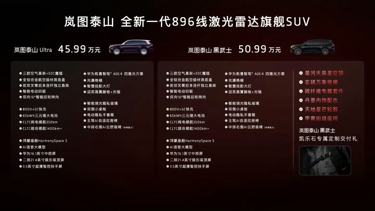 岚图泰山Ultra正式开始交付45个W可以买到岚图全尺寸SUV,四激光辅助驾驶的