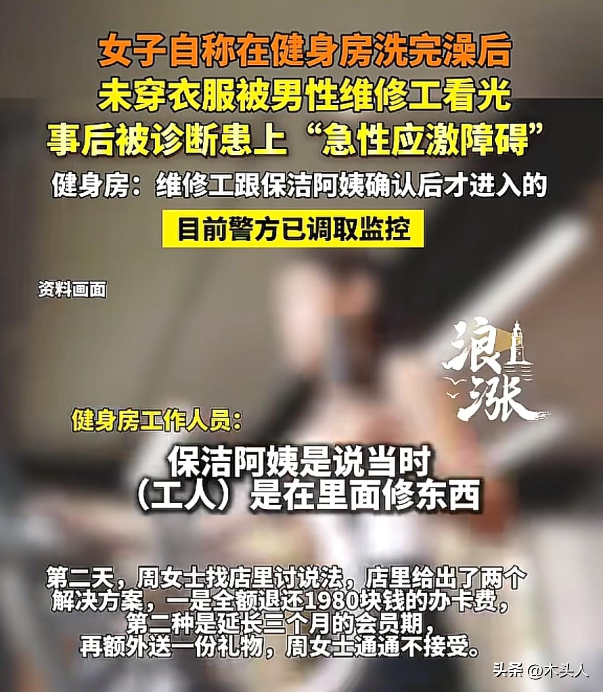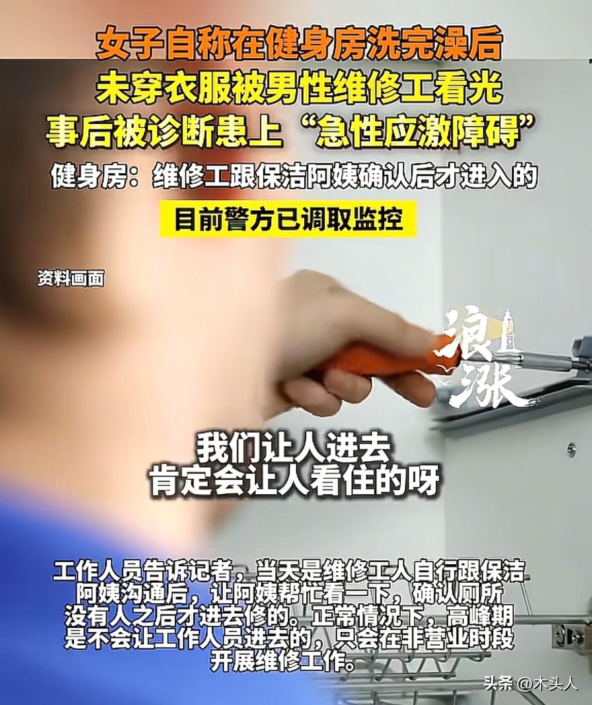 浙江嘉兴,女子健身洗完澡后,还未穿衣服,可没想到,进来一位男性维修工,女子被看光