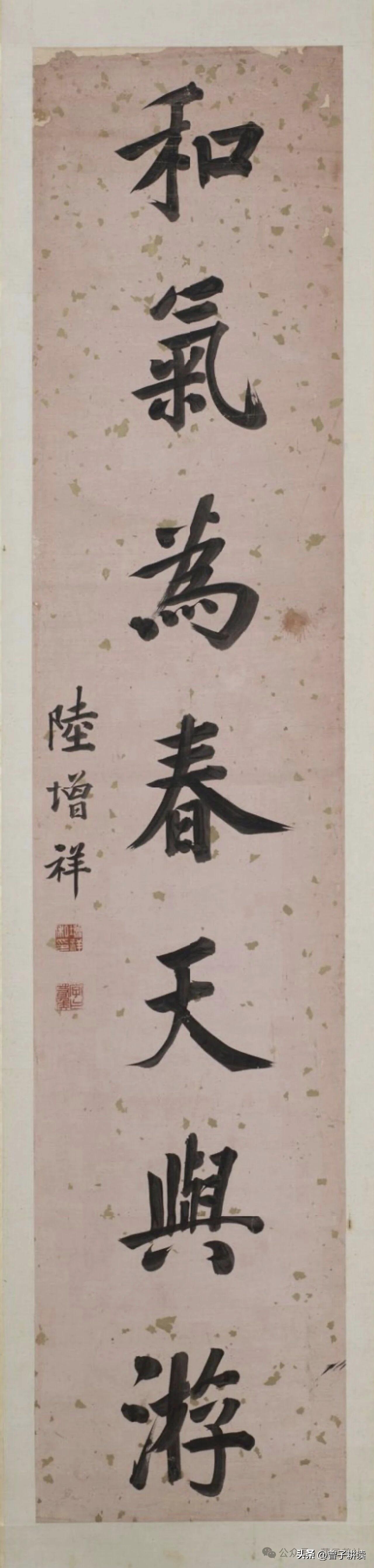陆增祥行书七言联:一笔一画藏着中国人的处世智慧 清代学者陆增祥的《虚怀和气七言联》,笔墨沉实刚劲,结体方正灵动,将楷书端庄与行书流畅融于一体。“虚怀视水人咸悟,和气为春天与游”,十四字道尽虚怀若谷、和气致祥的人生智慧。字里行间的从容气度,至今仍能让我们读懂古人的处世之道。你能从这字里读出几分通透?