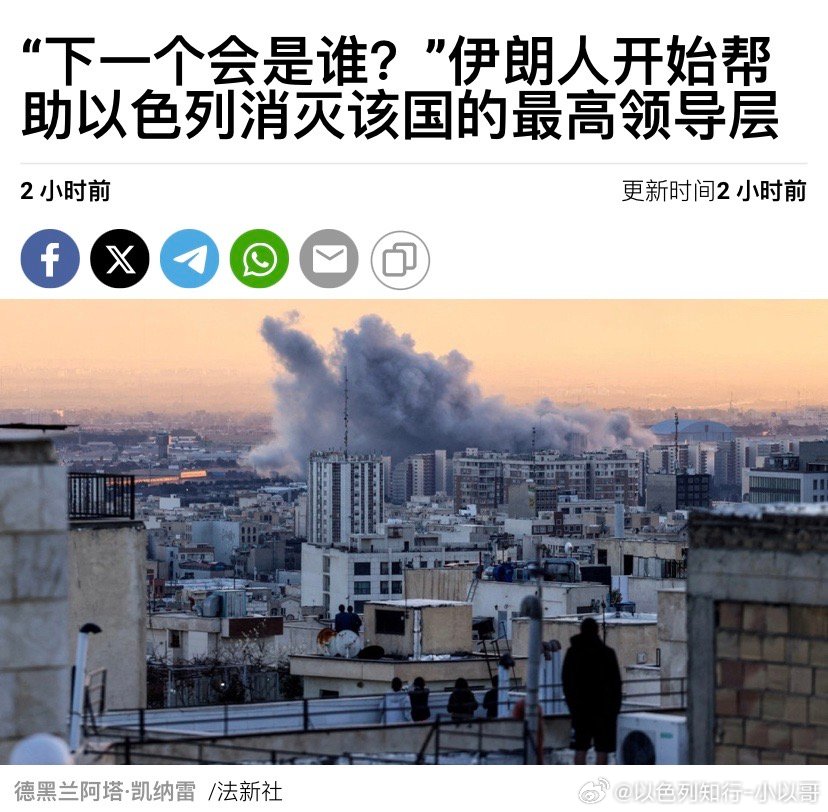 人民战争美国媒体透露,伊朗最近多名高级官员被清除,得益于伊朗老百姓给以色列传递的即时信息。这真是一场人民战争,以色列帮伊朗人清除镇压者。伊朗总统证实情报部长遇害据《华尔街日报》援引知情人士消息称,以色列情报人员开始致电伊朗安全部门的成员,威胁他们及其家人,如果他们试图干预可能发生的民众起义,将会遭到报复。海外新鲜事