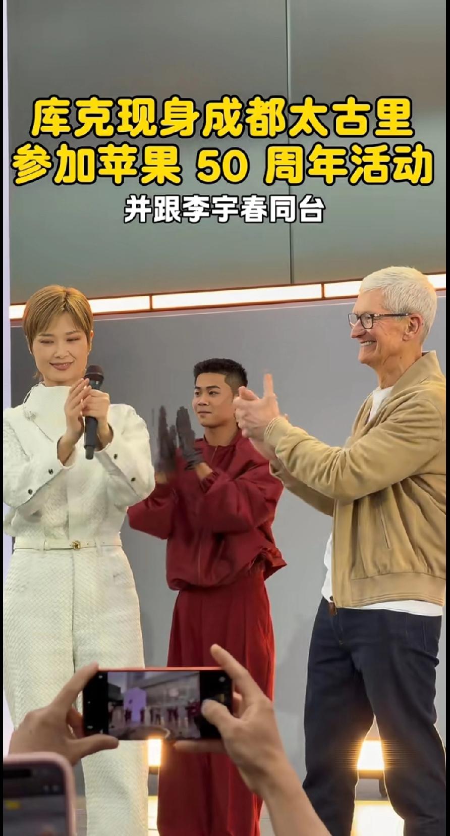 李宇春回成都参加苹果50周年活动,这波家乡自豪感拉满了!✨  作为土生土长的成都人,李宇春这次在家乡参加苹果50周年亚太首站活动,整个人都透着藏不住的开心和骄傲。 她笑着说:“太开心啦,能把这么重要的活动放在我的家乡成都!咱们成都又时尚又有文化底蕴,这次还把蜀绣、变脸这些非遗搬上舞台,就是想让全世界看看咱们家乡的美~” 连库克都夸她的表演是“视觉盛宴”,这波文化输出,春春真的给咱们四川长脸了!👍 李宇春 苹果50周年