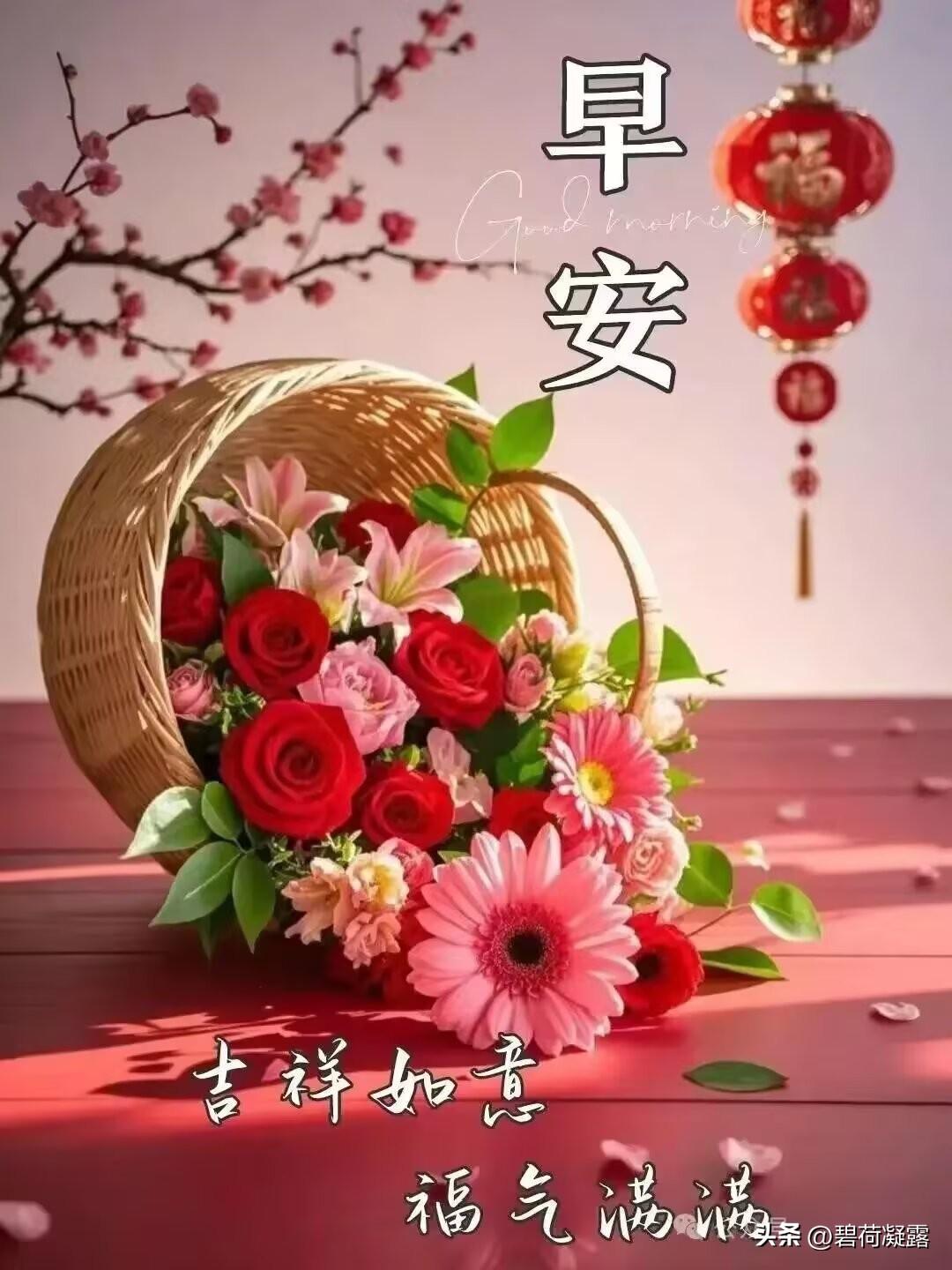 美好清晨,充满阳光,一声问候,万事呈祥,平安幸福,快乐启航,祝您健康,如意吉祥,