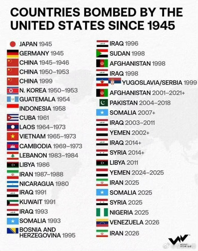 自1945年以来被美国轰炸的国家