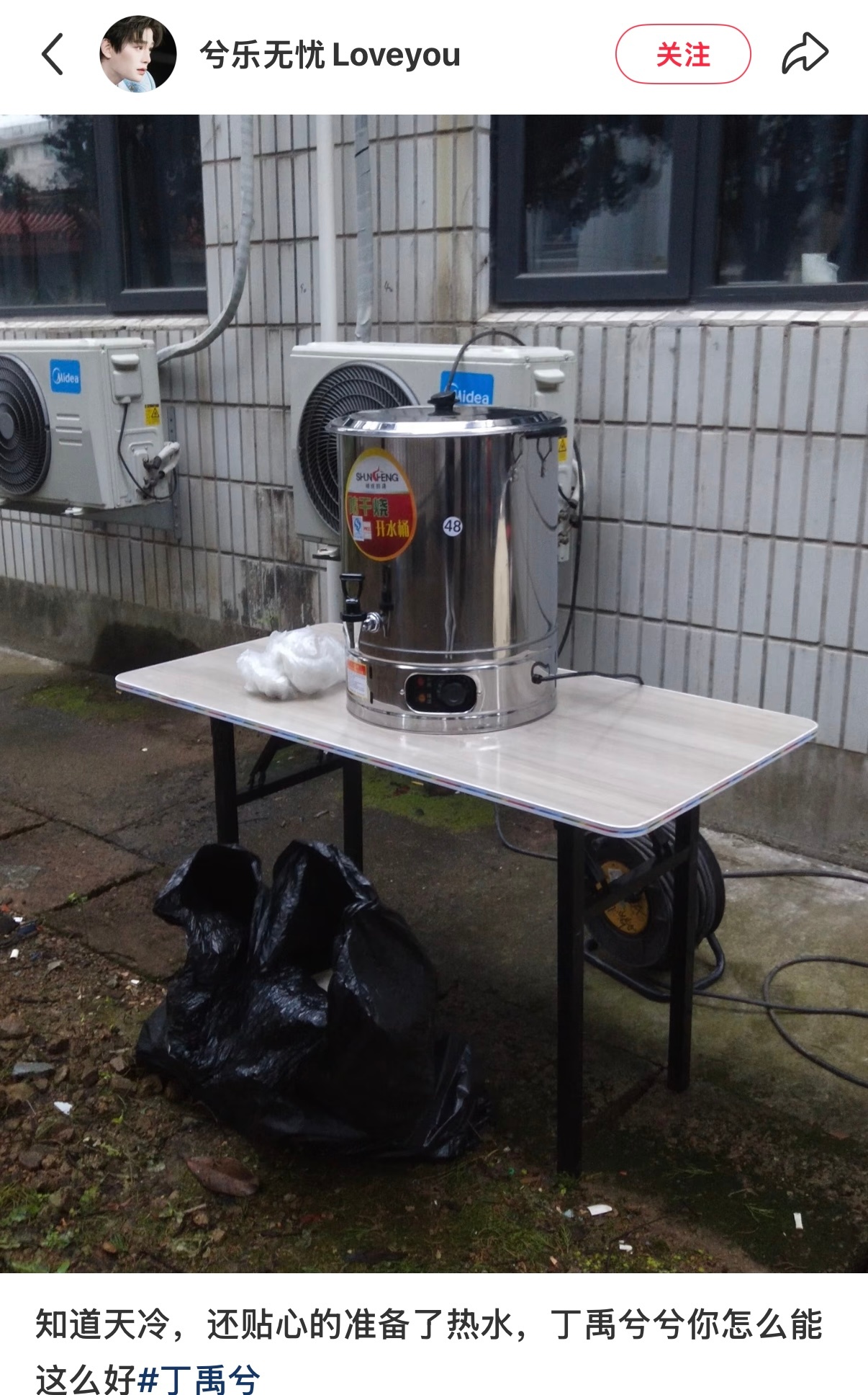 好贴心吧丁禹兮 因为横店下大雨降温了所以特地给蹲进妆的小海棠们准备了热水 丁禹兮