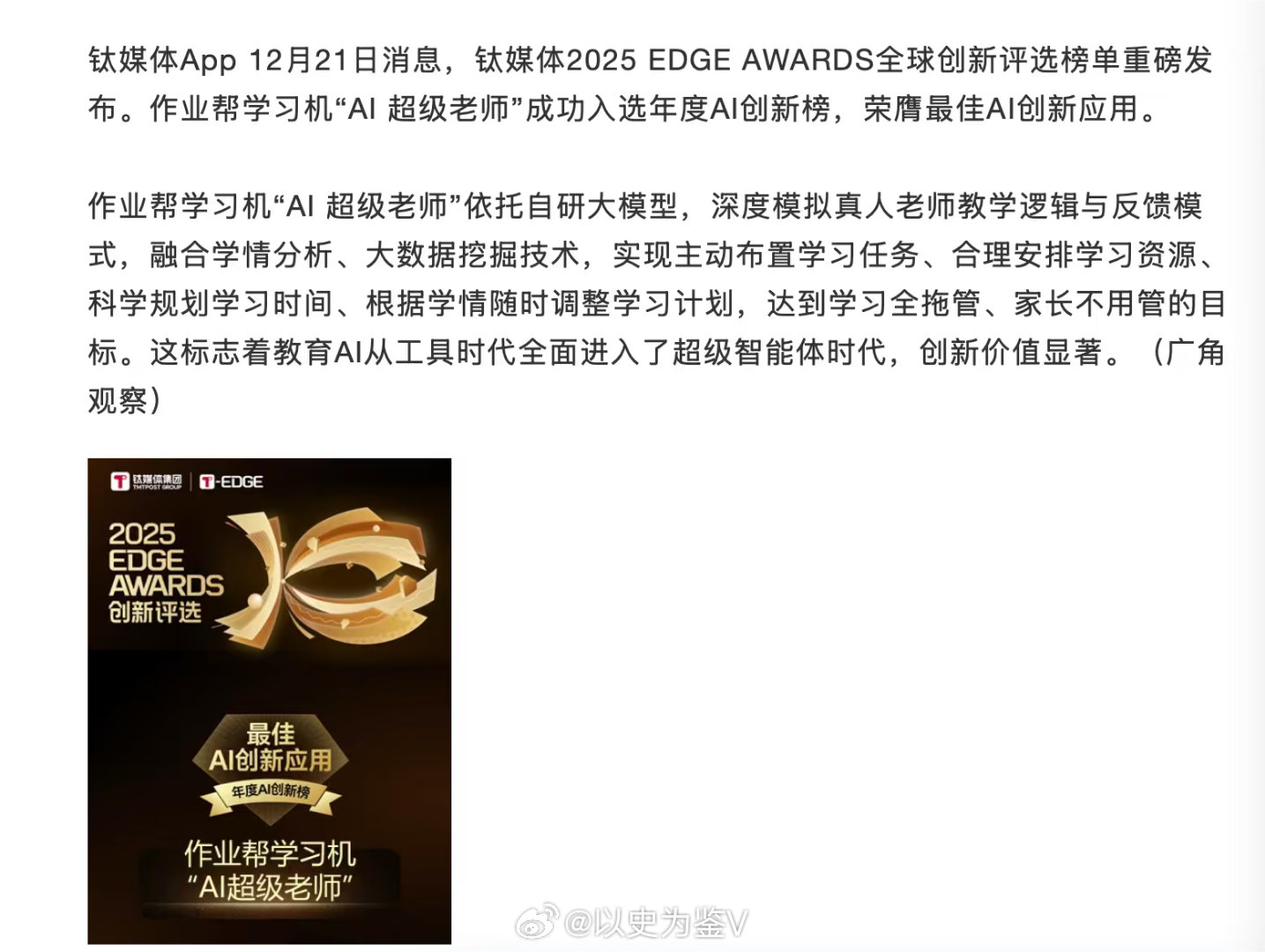 孩子自主学习的秘密武器!作业帮 AI 技术让学习变简单。获钛媒体最佳 AI 创新
