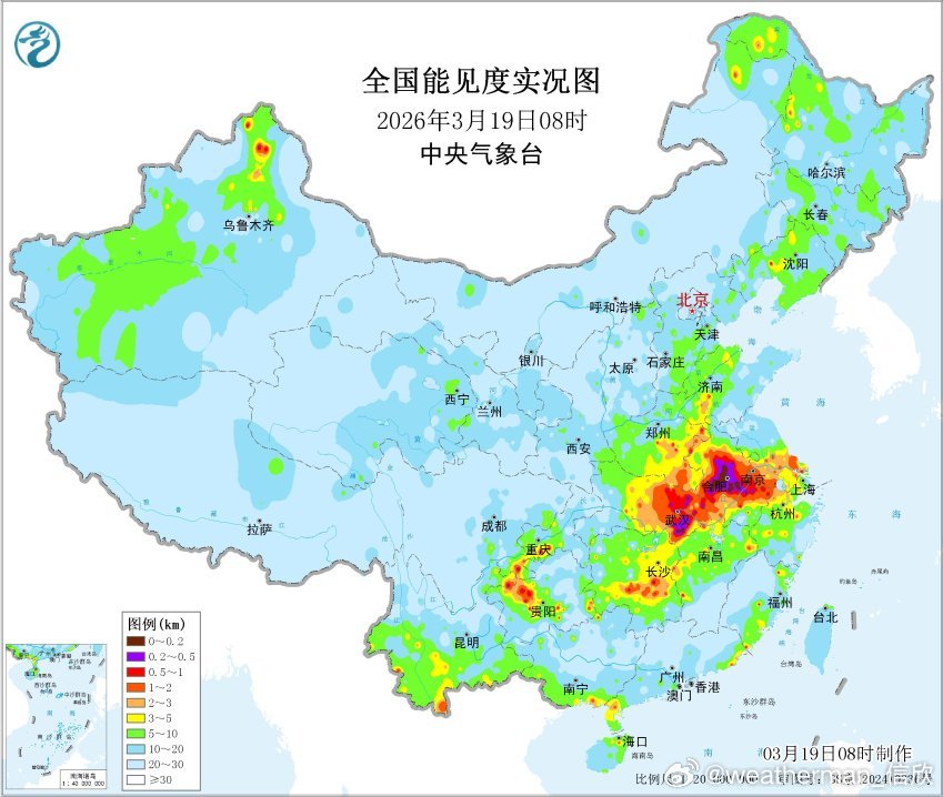 【雾 霾 沙尘】今晨在安徽湖北贵州重庆等地出现大雾,湖南部分地区是降水和雾混杂。8时能见度,湖南南岳37米(雨夹雪);安徽庐江58米、湖北金沙71米、贵州安顺108米、安徽巢湖127米、湖北嘉鱼135米,安徽长丰148米、安徽无为151米、安徽岳西158米、安徽合肥164米,均出现了强浓雾。
