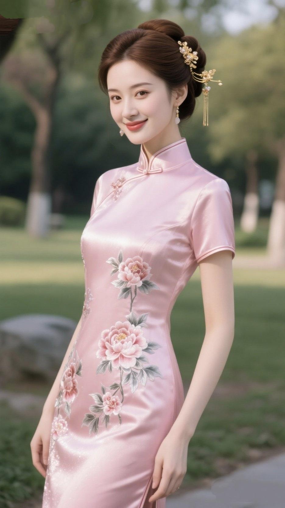 《雅韵旗装》 云肩叠翠映清光,锦缎裁成汉苑香。 盘扣玲珑凝素手,滚边雅致绕柔肠。 绣鸾凤羽藏春色,织锦龙纹沐暖阳。 立领高擎风骨秀,斜襟浅曳韵致长。 绫罗轻裹江南态,丝缎微垂塞北妆。 黛色襟前萦蝶影,朱红袖底漾流光。 一襦尽显东方韵,半袖深藏古韵芳。 步履轻摇风拂柳,身姿宛转月临窗。 百年风华凝此际,一脉雅意续华章。 不逐尘俗争艳丽,独留清婉动四方。 粉袖雅韵 新中式轻礼服 云纱盘扣 新中式晨袍背景 旗装古韵 国风旗上衣 中式露肩礼服