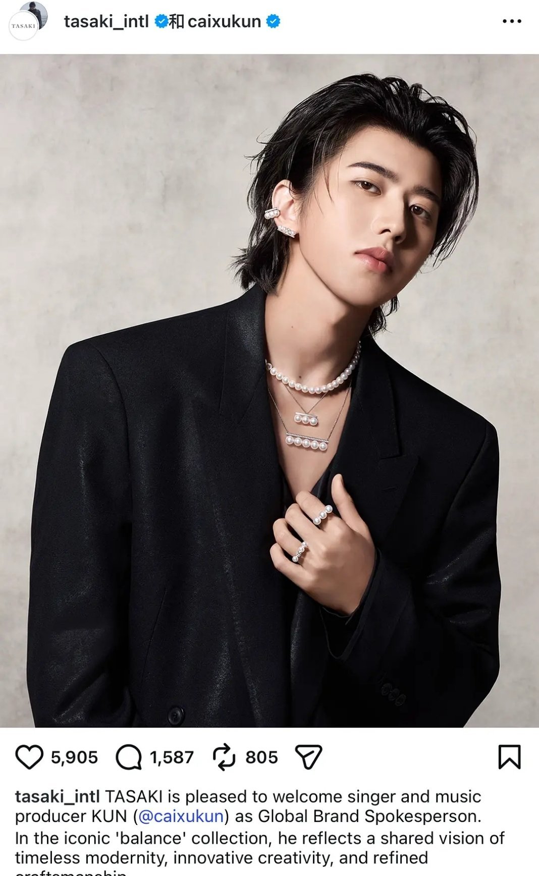 蔡徐坤官宣TASAKI全球品牌代言人,孙艺珍只是韩国区大使,坤的国际认可度真的太能打了!