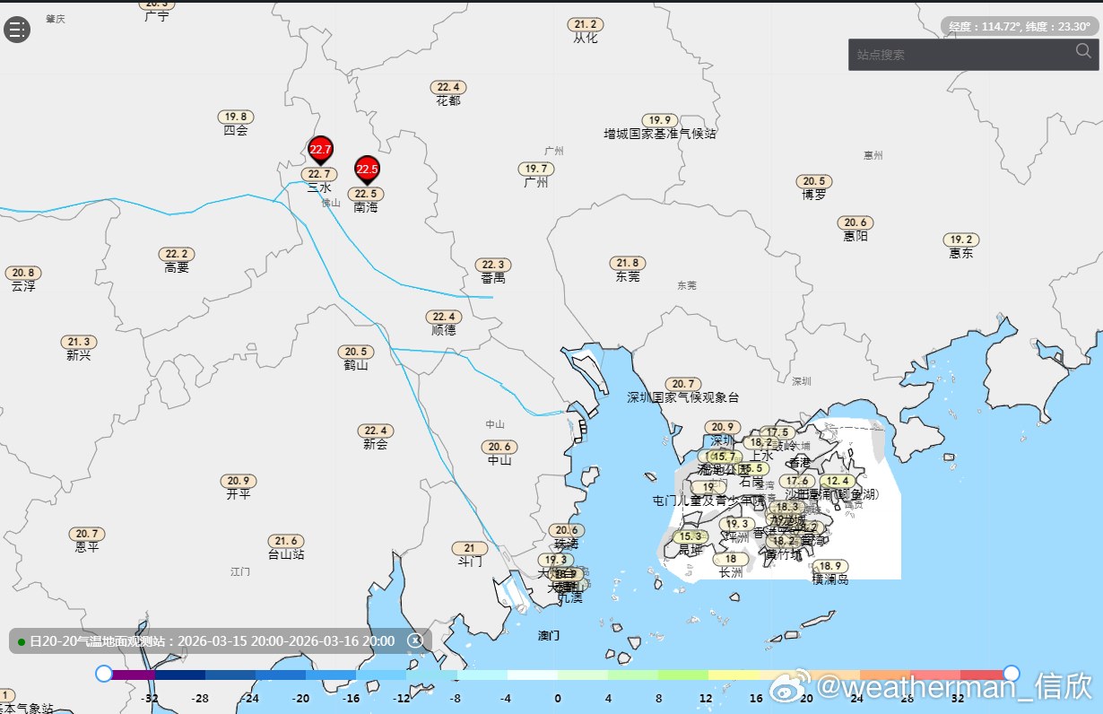 【广东多地开启入夏】近期大湾区部分城市,平均气温升至22℃以上,出现夏日。比如佛山(南海)3月16日-3月18日、中山、东莞、深圳、惠州(惠阳)都是3月18日开始。昨天广州21.7℃差了一点,但今天应该也会超22℃。考虑未来广东一带气温持续偏高,稳中有升,气象学的夏天应该就此到来。