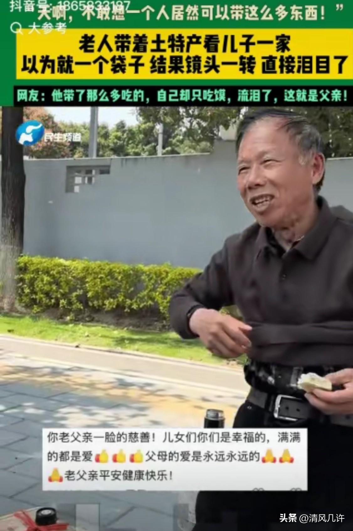 73岁老人带着土特产坐30个小时的车去看儿子,不料在等儿子来接他的时候,他竟坐在路边的石墩子上啃馒头,本以为就一个蛇皮袋子,不料镜头一转,直接泪目了! 网友:“天啊,不敢想象一个人可以带这么多东西!” 老人从四川老家出发,坐了整整30个小时的长途大巴,辗转上千公里才抵达儿子所在的城市。出发前,子女反复在电话里叮嘱,让他在服务区买份热饭热菜,别舍不得花钱,他嘴上应得爽快,心里却早有了自己的盘算。 这一路,他没踏进过服务区的餐厅一步,渴了就拧开随身的保温杯喝两口凉白开,饿了就摸出怀里揣的冷馒头,就着一点自带的咸菜慢慢嚼。他总想着,服务区的饭贵,能省一块是一块,省下的钱还能给孙辈买些小零食,或是给家里添点实用的物件。 镜头转过去,才看清老人脚边堆着的不是一个袋子,是四五个鼓鼓囊囊的蛇皮袋和纸箱,摞得比他的膝盖还高。 里面装的全是老家的味道——200多个自家鸡窝攒的土鸡蛋,用稻壳仔细裹着,生怕颠簸碰碎;100多斤刚榨好的菜籽油,装在密封的塑料桶里,沉得压手;还有杀好处理干净的土鸡土鸭,熏得油亮的腊肉香肠,剥好壳的花生米和核桃仁,甚至还有半袋晒干的野菜和磨好的地瓜粉。 这些东西,是他提前半个月就开始准备的,鸡是自己养的,油是自己榨的,菜是自己种的,每一样都带着泥土的气息,也带着他攒了大半年的牵挂。他怕东西不够,怕孩子在城里吃不到家乡的味道,恨不得把整个老家都打包带走。 儿子远远跑过来的时候,老人正把最后一口馒头塞进嘴里,手还在拍着身上的碎屑,看到孩子的瞬间,脸上的疲惫一下子散了,露出憨憨的笑。他想站起来,却因为坐得太久腿麻,晃了一下才站稳,嘴里念叨着“没等多久,没等多久”,手还下意识地护着脚边的袋子,怕被来往的人碰坏。 儿子看着他沾着馒头渣的嘴角,看着那堆几乎要把老人淹没的土特产,鼻子一酸,眼泪差点掉下来。他知道,父亲不是没钱吃饭,是把所有的好都留给了他们,自己却舍不得多花一分钱。30个小时的车程,老人就靠几个冷馒头撑着,把沉甸甸的爱意扛到了孩子面前。 老人一辈子节俭惯了,年轻时为了养家糊口,舍不得吃舍不得穿,把最好的都留给孩子。 如今孩子长大了,在城里安了家,他还是改不了这个习惯。他总觉得,城里的东西再好,也不如老家的实在,不如老家的放心。所以哪怕路途再远,哪怕行李再重,哪怕自己再辛苦,他也要把这些带着家的温度的东西,亲手送到孩子手里。 他不说想孩子,不说心疼孩子,可这30个小时的颠簸,这满车的土特产,这啃冷馒头的背影,就是他最直白的爱意。他用最笨拙的方式,表达着最深沉的牵挂,让每个看到的人都忍不住红了眼眶。 这一幕被拍下来传到网上,瞬间戳中了无数人的泪点。 有人说,这就是中国式的父亲,不善言辞,却把所有的爱都藏在行动里;有人说,想起了自己的父亲,每次回家也是大包小包,恨不得把整个家都搬过来;还有人说,看着老人啃馒头的样子,既心疼又心酸,心疼他的辛苦,心酸自己没能多陪陪父母。 大家在评论区里诉说着自己的故事,也在诉说着对父母的愧疚和思念。我们总以为父母还年轻,总以为还有很多时间可以陪伴,可不知不觉间,他们的头发白了,背也驼了,却还在为我们操心。 这份沉甸甸的亲情,没有华丽的辞藻,没有惊天动地的举动,却比任何语言都更有力量。 它藏在父母的唠叨里,藏在他们塞给我们的行李里,藏在他们默默付出的背影里。我们习惯了接受他们的付出,却常常忘了说一句谢谢,忘了多花点时间陪陪他们。直到看到这样的场景,才突然惊醒,原来父母的爱,从来都不曾减少,只是我们常常忽略了它的重量。 各位读者你们怎么看?欢迎在评论区讨论。