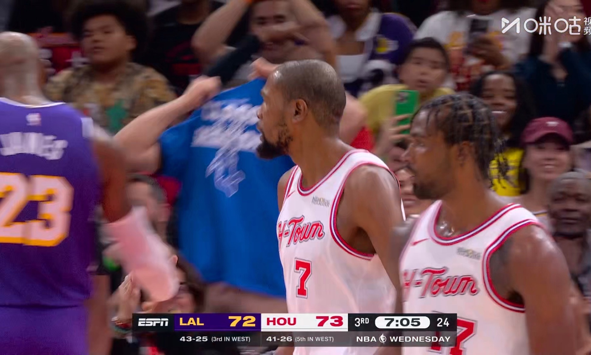 赶紧挑战或者暂停,半节5分阿。 湖人vs火箭