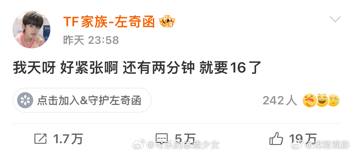 期待左奇函16岁的单人cha 一路看着你长大有太多值得纪念的瞬间,藏在细节里的温柔让人感动,能陪着你成长真的超级幸福,新的一岁平安快乐健康顺遂,期待左奇函16岁的单人cha。