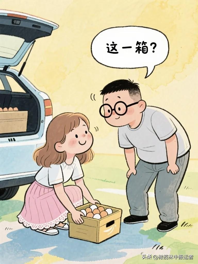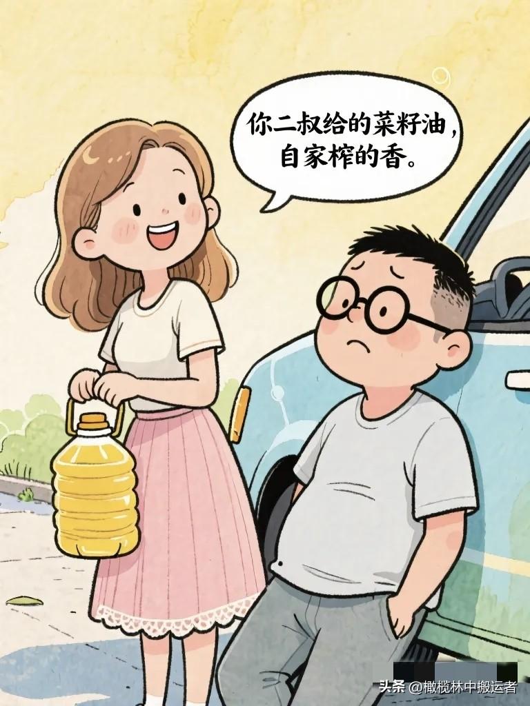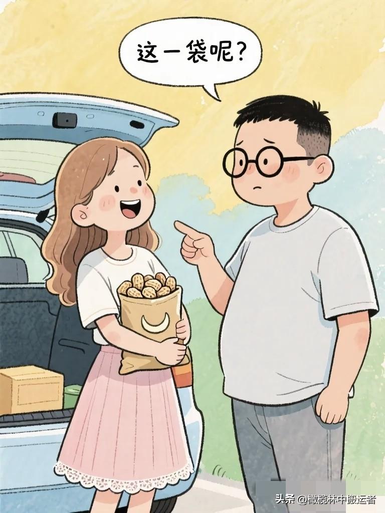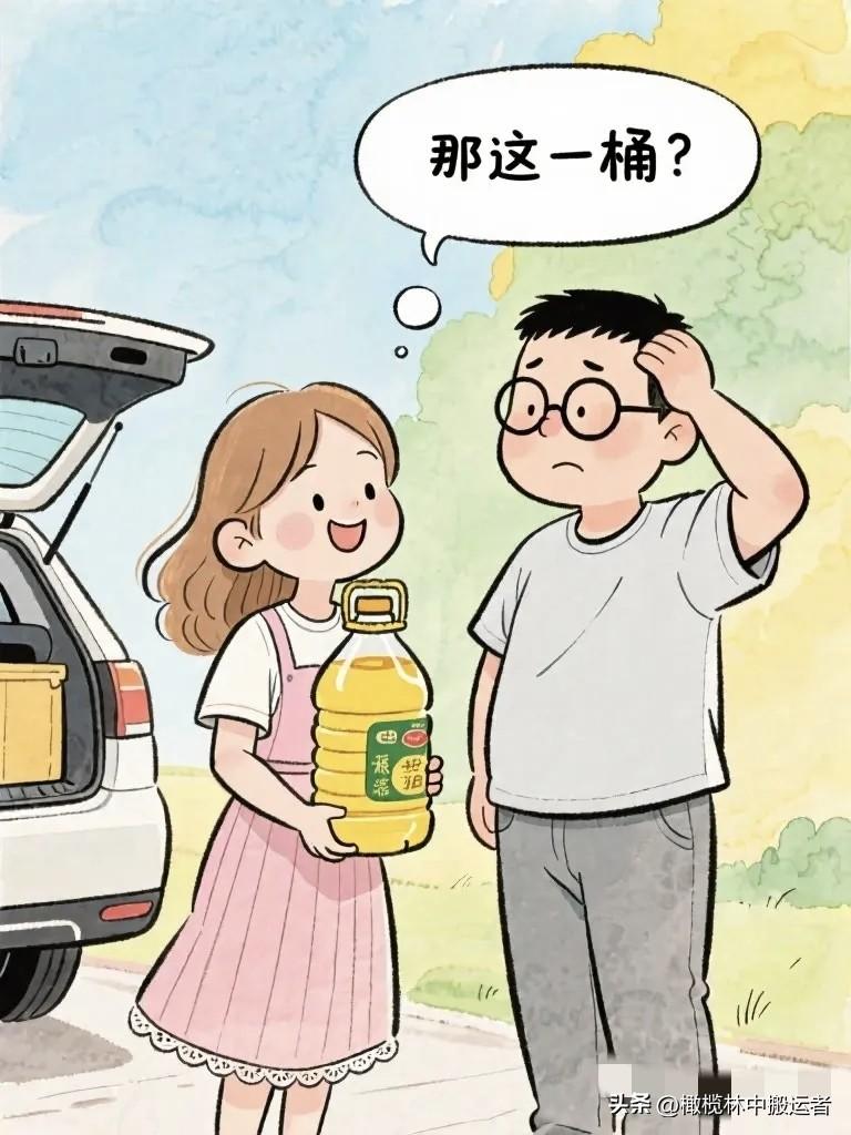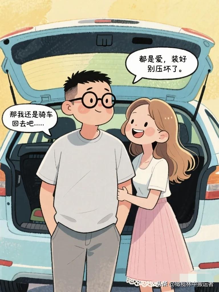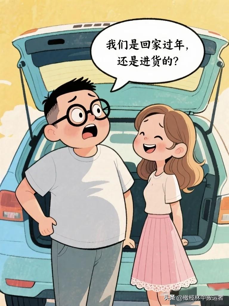 搞笑漫画:后备箱比来时还满,丈夫:"来的时候不是这些东西啊?" 妻子:"你妈给的