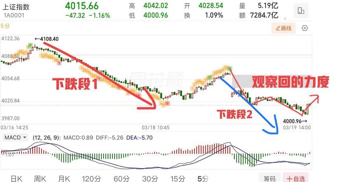 盘中最低点打到4000点,实际上就是来考验前低4002来了。午评也讲过,只要不加速会有回拉,这个位置是多头防守区,不能有效跌破,盘中有一笔回拉的动作,要看是否放量以及回拉的力度,如果力度还是弱且不放量,那还得继续磨,目前来看回拉的力度还是偏弱。