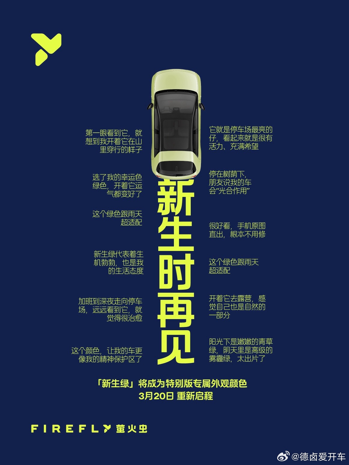 萤火虫特别版又要上新了,这次会基于「新生绿」打造,毕竟春天来了是可以带点绿。