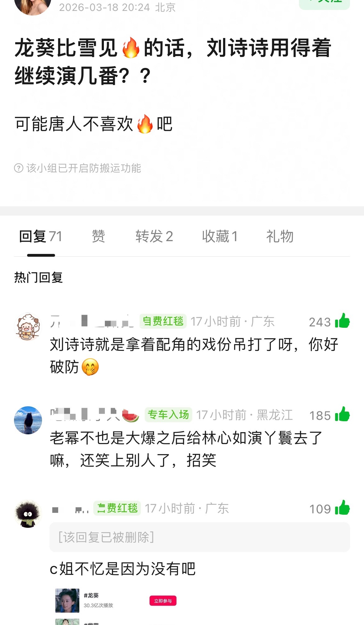 刘诗诗因为龙葵太火,有人pf,网友怼黑,看着挺爽