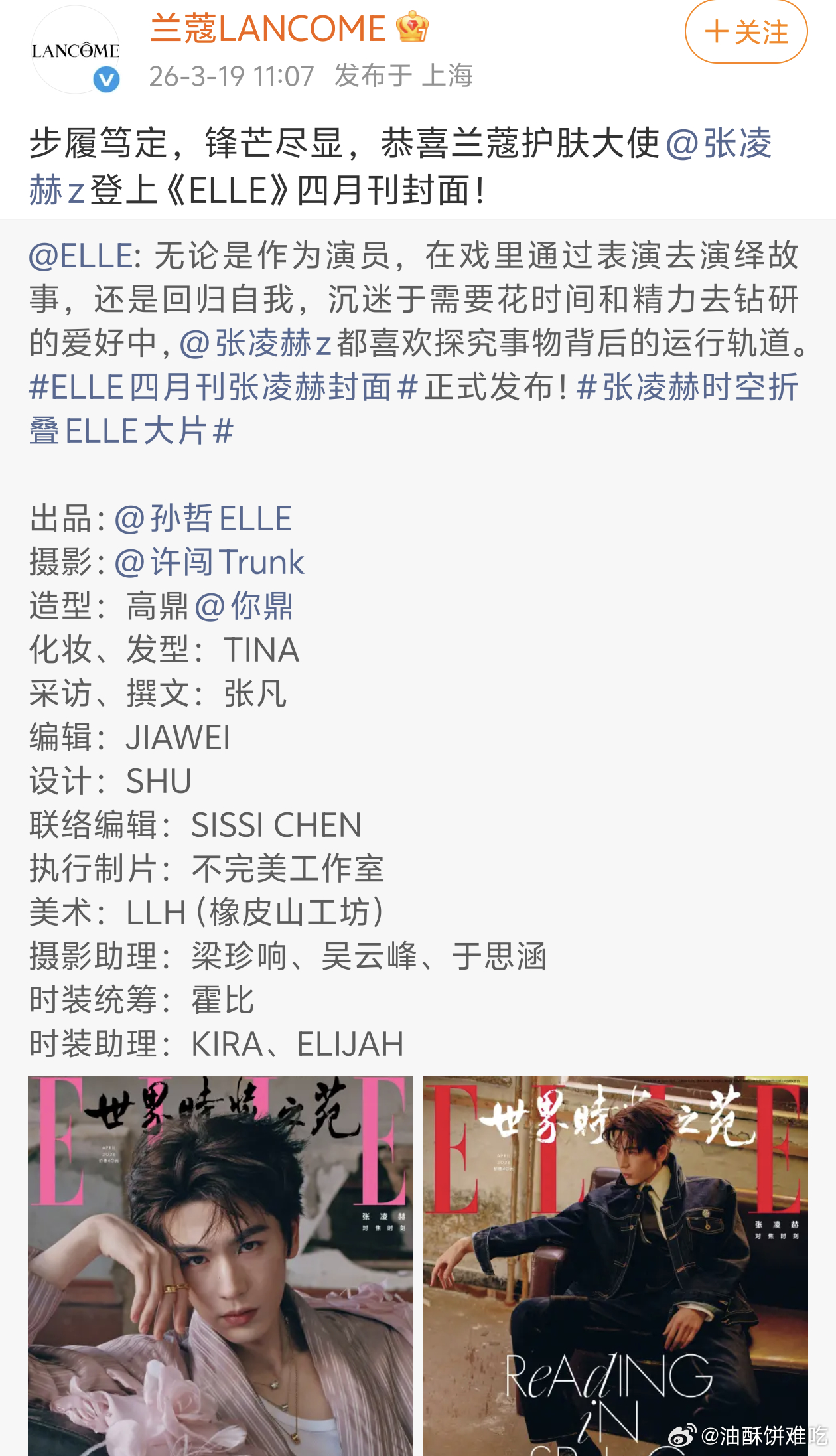 张凌赫首本五大15分钟销售额破一千万,进入内娱杂志千万俱乐部,坐等24h成绩!三个品牌方都认领了应该是一起推封的,看得出品牌代言非常好了许闯拍的张凌赫张凌赫杂志张凌赫的杂志销量