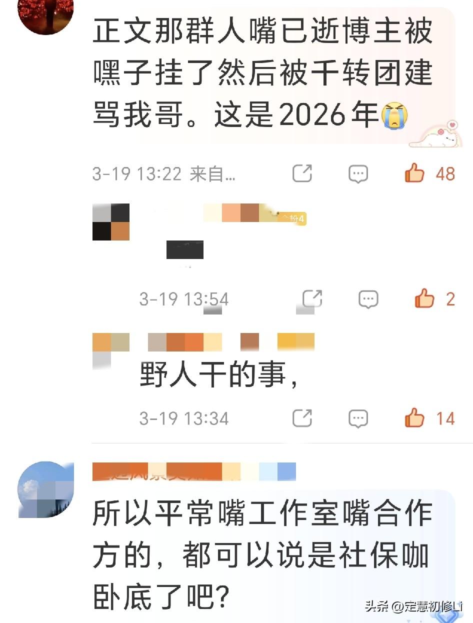 原来狙工作室和合作方的都是领工资的王一博的职业粉丝,被发现后换上肖战头像被黑子千转辱骂,太可恨了,以后遇到给狙工作室和剧方合作方的,只管拉黑投诉,不会有一个错杀