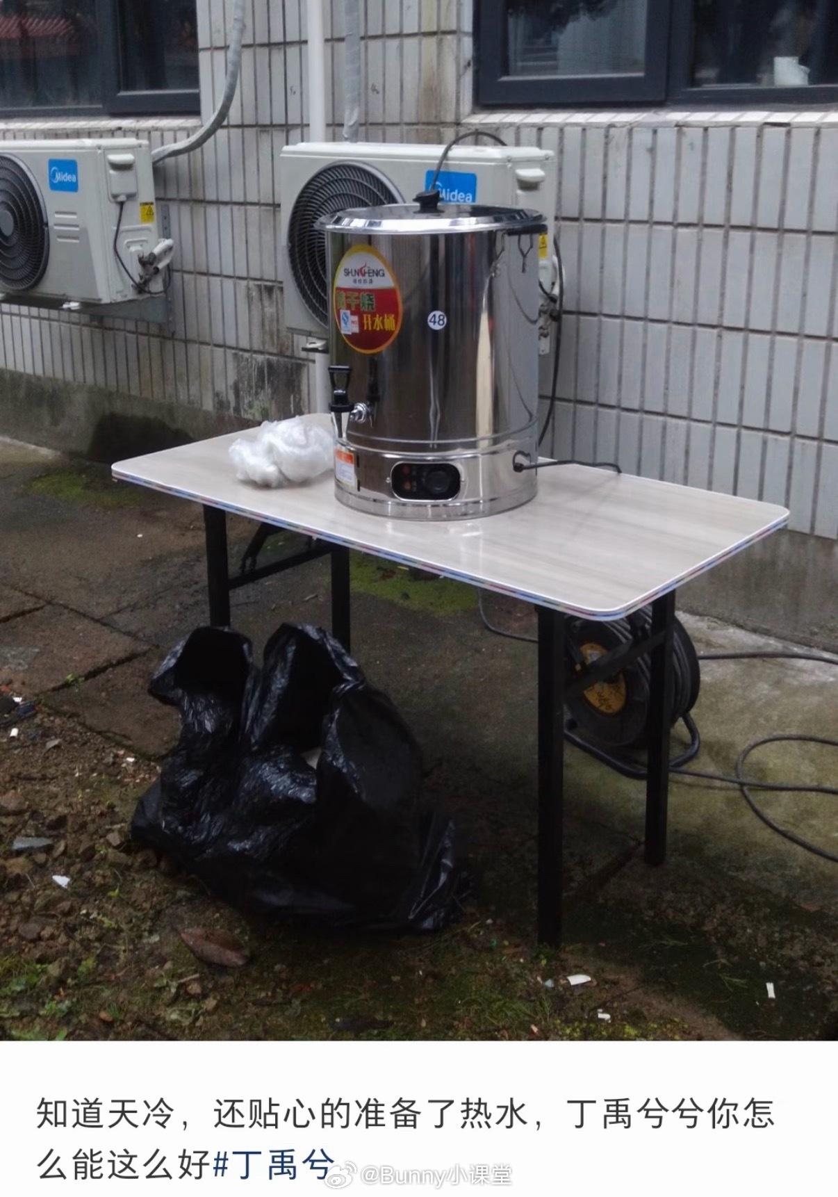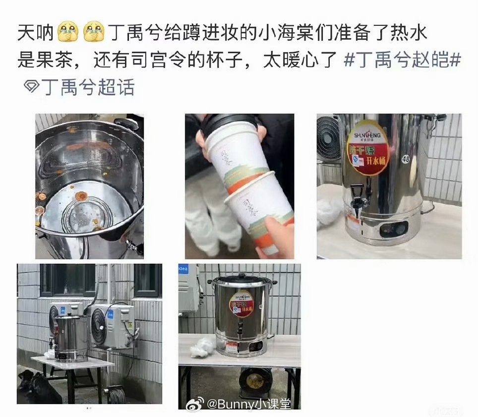 《司宫令》拍摄现场,丁禹兮给粉丝准备了果茶和一次性杯子,热水泡几片柠檬也算果茶吗……?