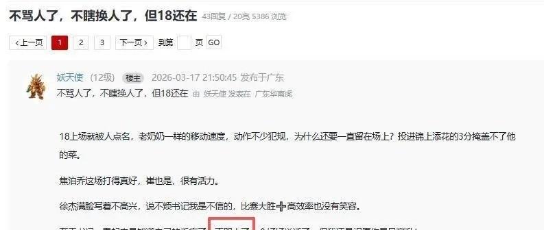 作为看了广东队十几年的老球迷,看到杜锋教练这次居然全程没咆哮、没摔战术板,我第一反应居然是:太阳打西边出来了? 咱们实话实说,这场打新疆的比赛,开局其实挺吓人的。前 6 分钟全队跟断了电似的,一共就得了 5 分,进攻烂到让人想关电视。换成以前,杜指导早就在场边开启“死亡凝视”加高音骂人模式了,队员估计吓得手脚都不知道往哪放。但这次怪了,杜锋稳如泰山,反手把状态不好的大外援和几个低迷本土球员按在板凳上,果断提拔崔永熙上来。结果你猜怎么着?小将上去就是连得 9 分,百发百中,瞬间把比分咬住甚至反超。整场比赛下来,广东队顺着这股劲儿,最后居然赢了 22 分!最让咱们这些老粉破防的不是赢球本身,而是全场你没听到杜锋骂一句脏话,没看到他青筋暴起。特别是焦泊乔这孩子在场上笑得那叫一个开心,敢做动作、敢扣篮,数据直接爆表。赛后有个兄弟总结得太精辟了,就四个字:“不骂人了”。 讲真,作为一个常年被老板和客户怼的打工人,我太懂这种“被信任”的感觉了。以前看广东球,总觉得队员们像是在替教练干活,生怕出错挨骂,打球缩手缩脚,看着都累;今天这场球,我才觉得他们是在为自己打,眼里有光,心里不慌。杜指导这一改,不仅仅是脾气变好了,更是把球员当“人”看了,给了大家容错的空间。说实话,我之前也纠结过,觉得严师出高徒,没点脾气带不出铁血队伍,但今天这场大胜狠狠打了我的脸——原来鼓励和信任,比唾沫星子更有力量。我就怕这只是一时的“限定版温柔”,要是杜导能一直这么冷静下去,别三天打鱼两天晒网,那咱广东队的上限真不可估量。 兄弟们,你们觉得杜锋这次是彻底“悟了”还是只是一场论?这种“不骂人”的风格要是常态化,广东队今年能不能冲冠?来评论区,咱们敞开了聊聊!