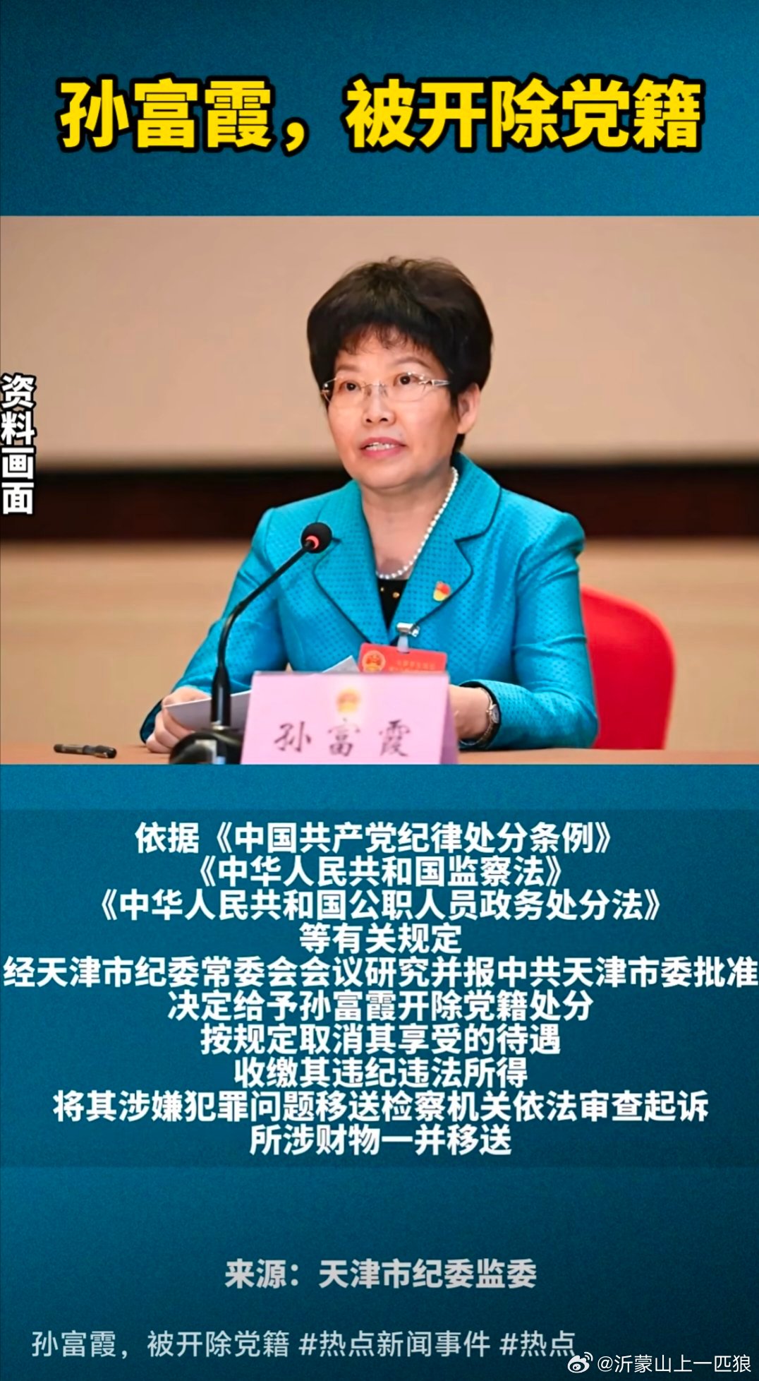 【天津纪监委打母虎!孙富霞, 被开除党藉!】