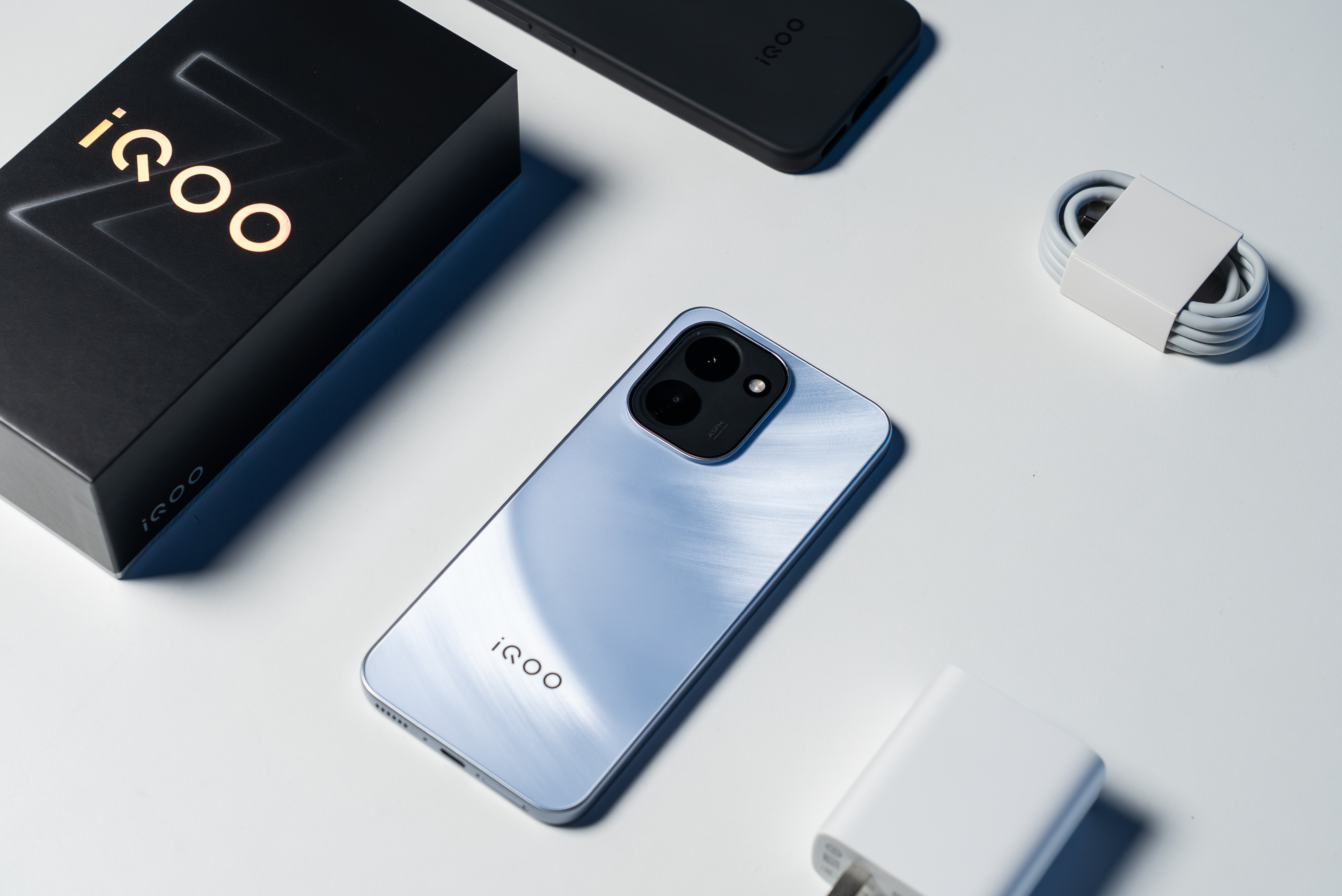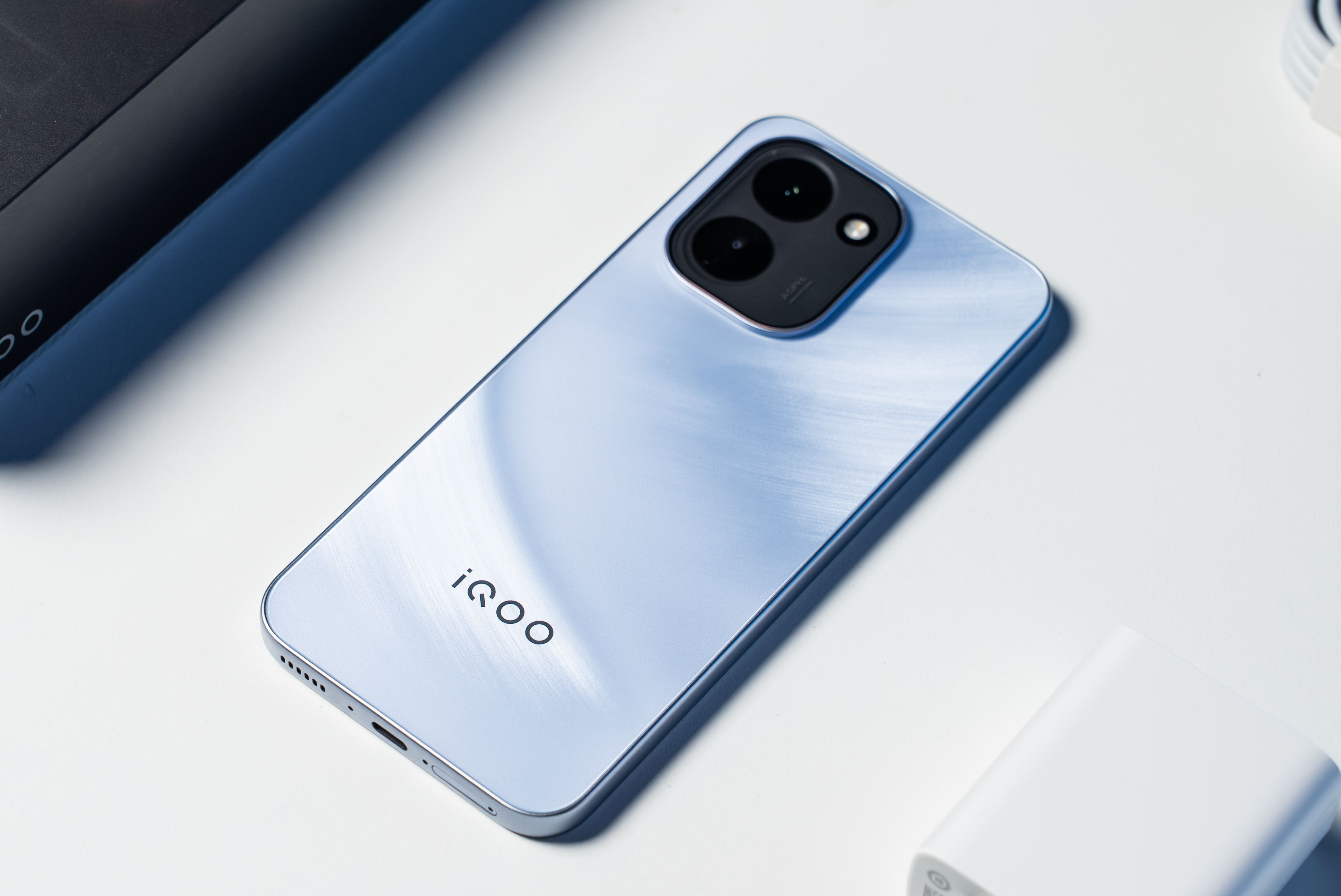 我们拿到了 iQOO最新发布的 iQOO Z11 这个配色叫沧浪浮光,有一种淡蓝色水面上波光粼粼的感觉,搭配上透明可视化设计的相机 DECO,很有层次感。