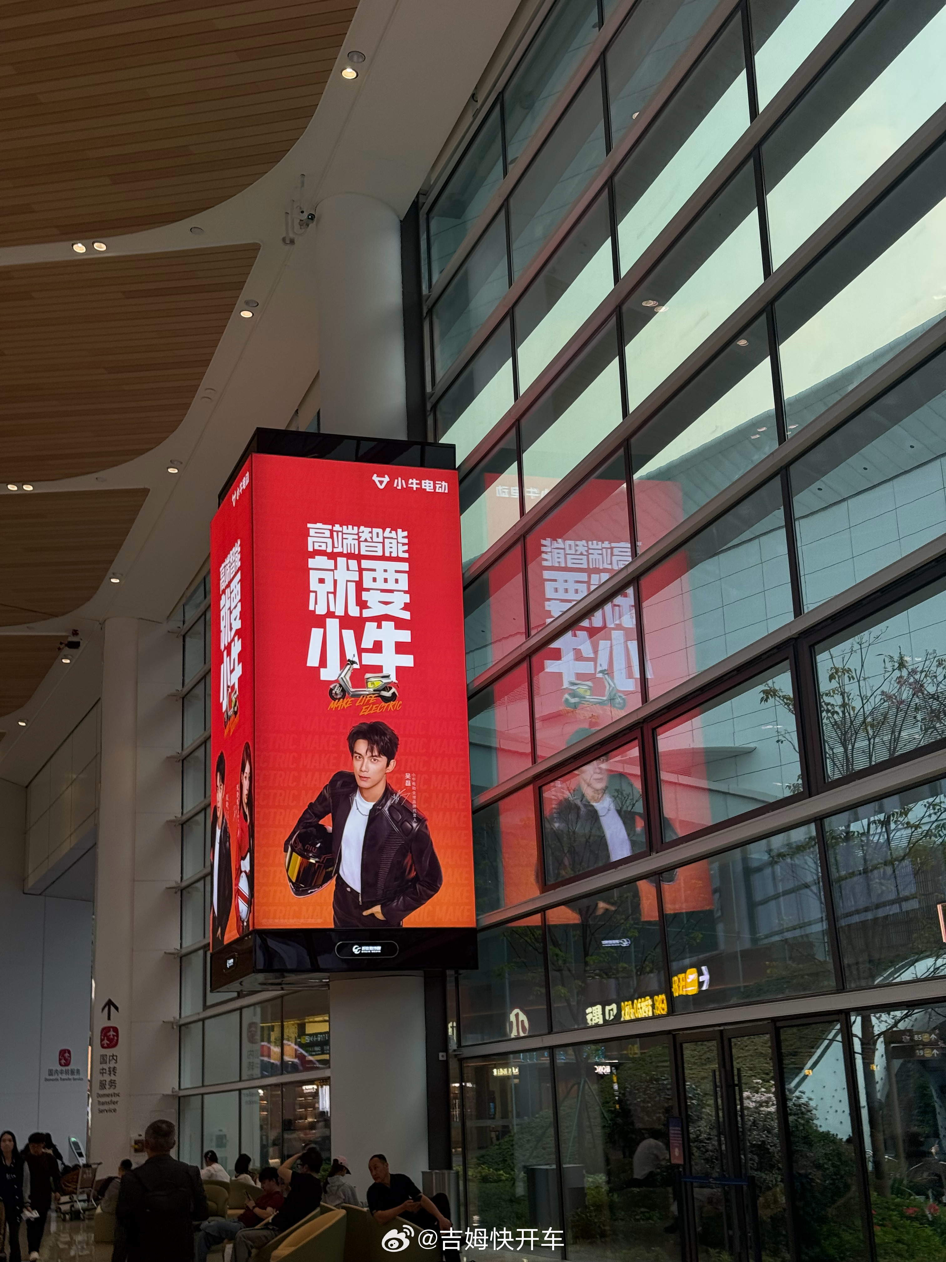 小牛电动的广告都做到机场了,还是双代言人小牛电动