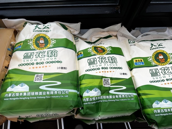 新黄河大鱼财经记者注意到,尽管“天边砂锅焖面”切入的是更偏大众化的快餐品类,但其在设备投入和原材料呈现上并未完全走低成本路线。例如,店内配备了与西贝同款、单价约5万元的蒸烤箱;现场还展示了3款来自河套地区的面粉品牌,零售价约为8元至10元/斤,价格明显高于山姆等商超在售自有品牌面粉。这意味着,该项目并非单纯以低价取胜,而是试图在“品质感”和“性价比”之间寻找平衡。