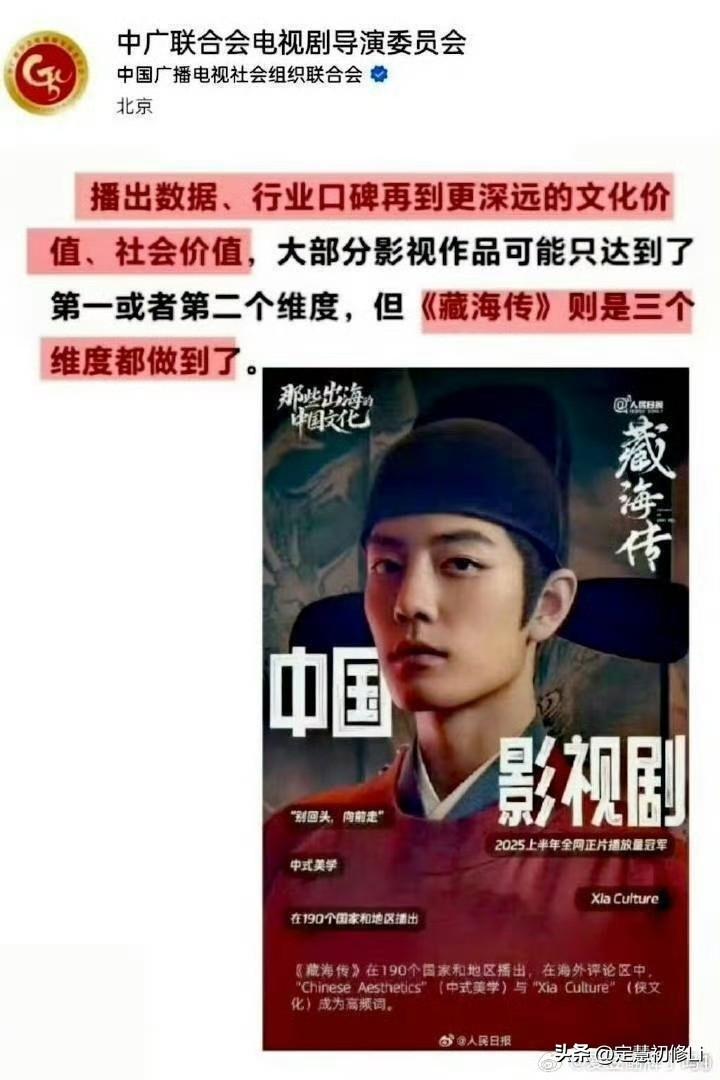 白玉兰奖项预测名单,有人说肖战的《藏海传》不是正剧现实题材,又是古装,肖战又太年轻资历浅,不占优势。 那就让大家看看《藏海传》的政治高度,社会价值,文化价值和世界影响力有多高吧。 几十年都没有剧有过这样的高度。难怪被央视和广电称为国剧标杆,文化输出名片。肖战靠90%的戏份撑起了这部全球现象级大爆剧,演技台词封神。肖战拿奖,才是实至名归