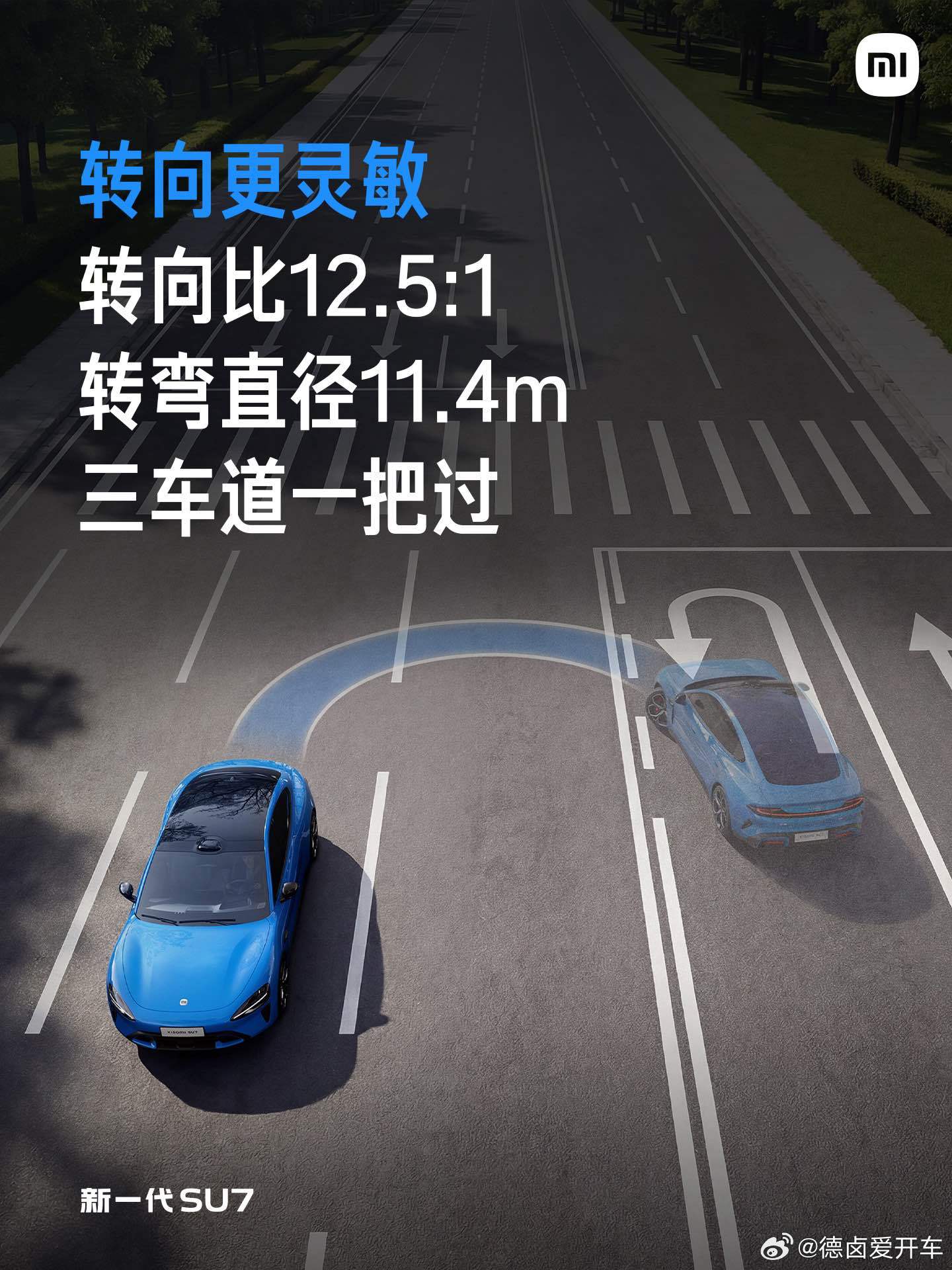 转向系统升级,转向比为12.5:1,转弯直径11.4m,可实现三车道一把过,转向更灵敏;