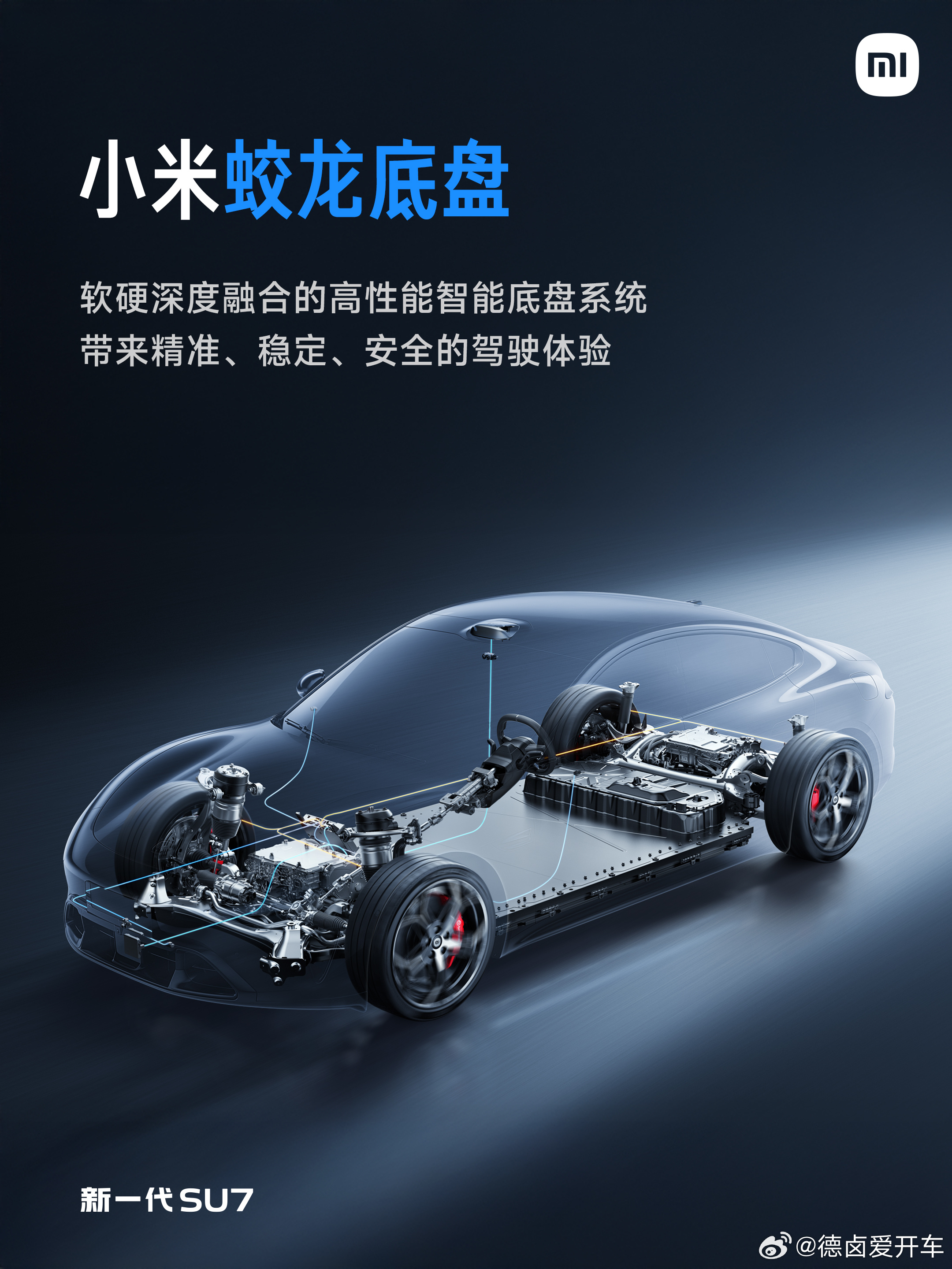 新一代SU7基于「小米蛟龙底盘」打造,实现软硬深度融合,能带来精准、稳定、安全的驾驶体验。