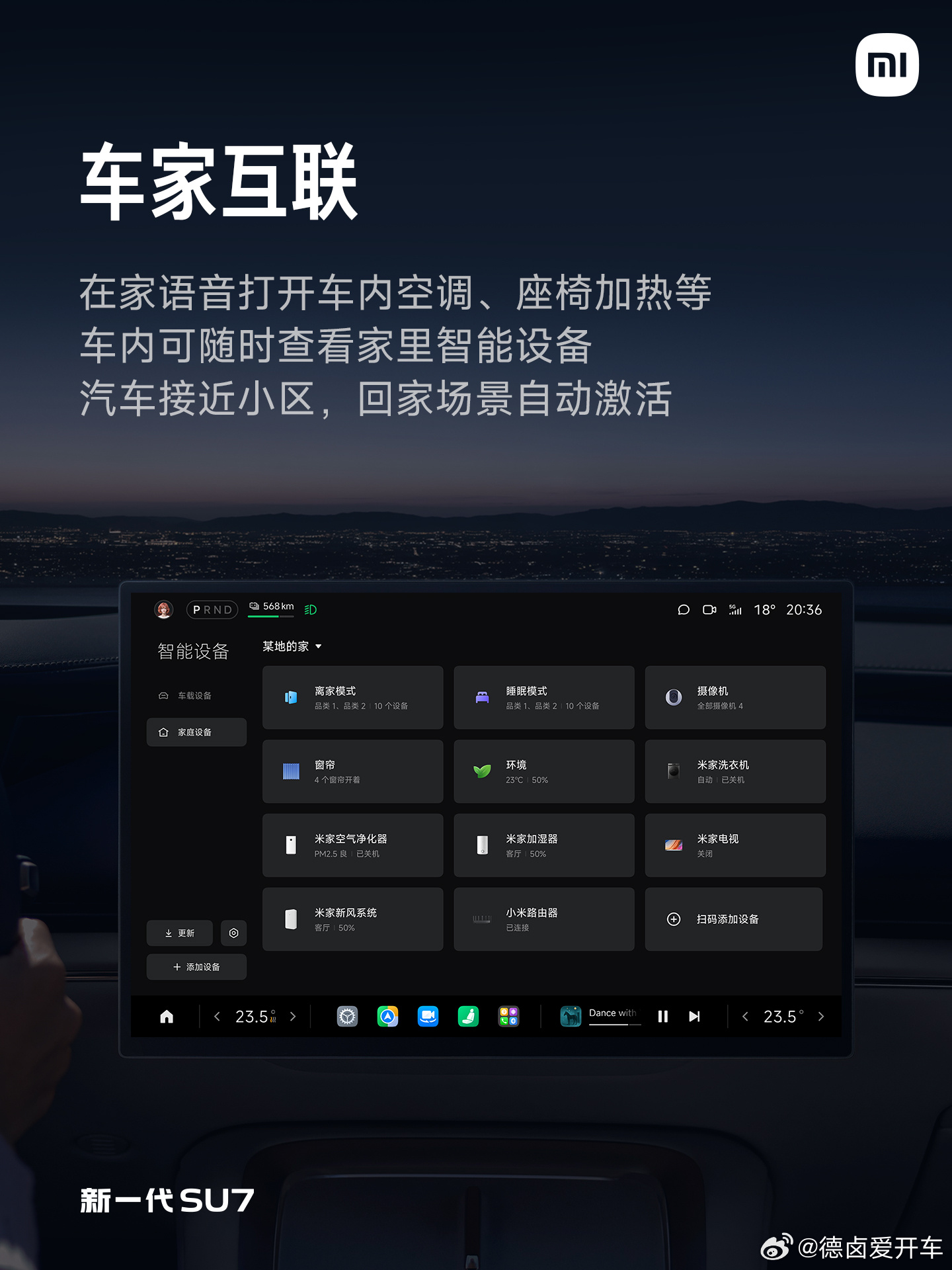 车家互联可在家语音控制车内设备,车内查看家中智能设备,汽车接近小区时自动激活回家场景;