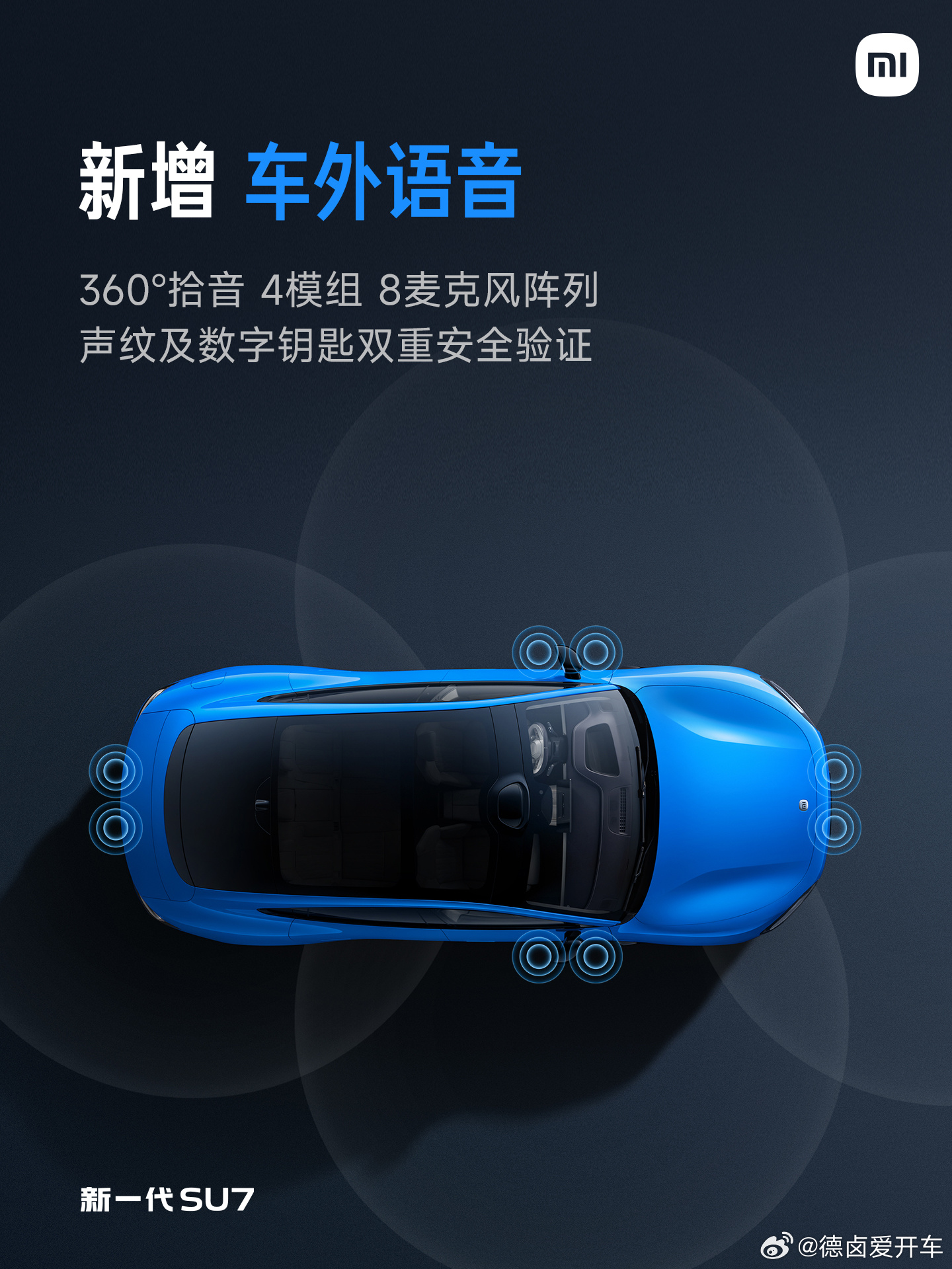 新增模糊语义导航与车外语音,车外语音采用360°拾音、4模组8麦克风阵列,
