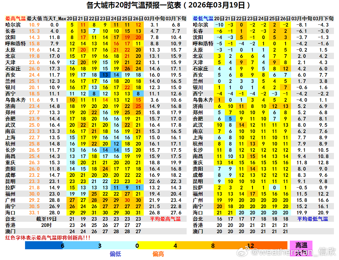 比如太原21日20℃、24日21℃、25日22℃,会不断刷新今年以来气温新高。北京25日最高可达21℃、沈阳26日最高20℃,上述城市都将是今年首次上20℃。济南26日最高25℃可能是今年首次上25℃;广州25日最高30℃将是今年首次上30℃。
