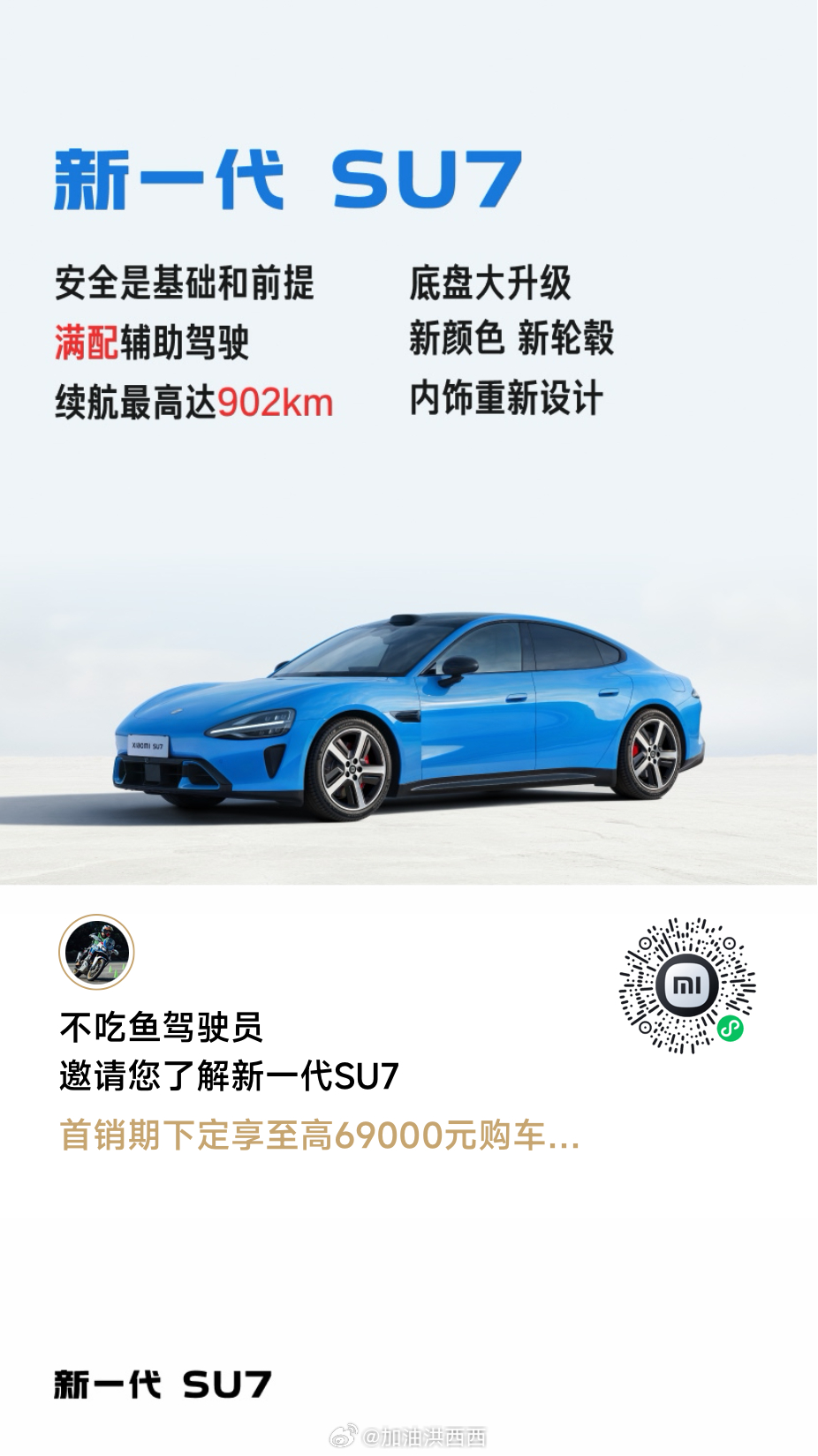 朋友们,新一代小米SU7今天9点半就可以下单了,要下单的朋友一定要扫我合伙人的邀