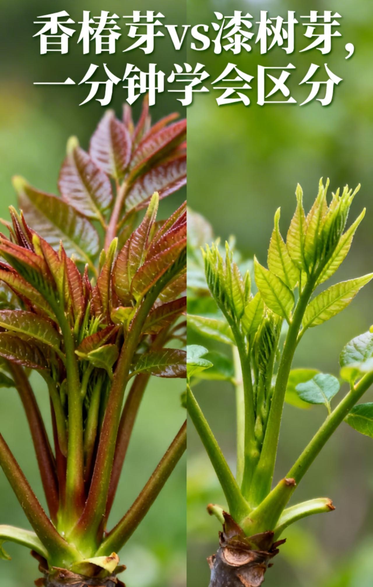 一分钟带您认清香椿芽&漆树芽! 又到了春季吃香椿的季节, 会有很多朋友去郊外采摘