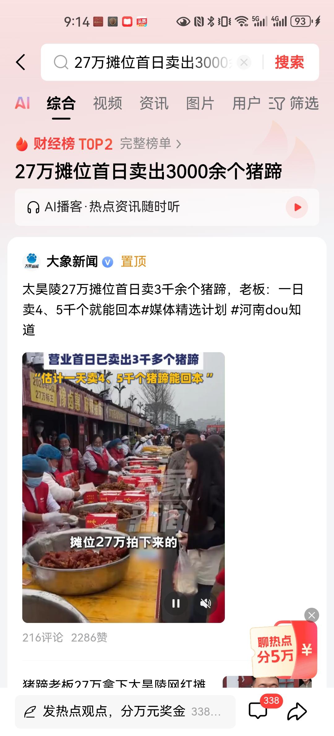 今天是庙会的第一天,虽然还没有结束营业,但是老板在接受采访时已经喜滋滋地说,已经卖出了3000多个猪蹄,看来他这次拍卖是一次成功赚钱的投资。我们可以一起算一个账,每个烤猪蹄卖25元,那么每天的流水大约是在7.5万元,庙会持续的时间30天,即使在后期人数有所减少,按照每10天衰减20%顾客计算,他也最少能卖出7.2万个猪蹄,营业额能够达到180万。 一般这种烤猪蹄的毛利润率应该是在40%以上,那么老板可以获得毛利润72万,去掉27万的拍卖价,再去掉人工成本,估计老板还是能赚到50万以上。当然财不露白,老板在之前采访时说,估计一天卖四五千个猪蹄能回本,但是看到记者第1天采访时,卖出3000多个,就已经笑逐颜开,说明老板还是打了个埋伏,他已经觉得心满意足了。 让每一个辛勤创业的老板多赚一点,大家觉得对不对呢?