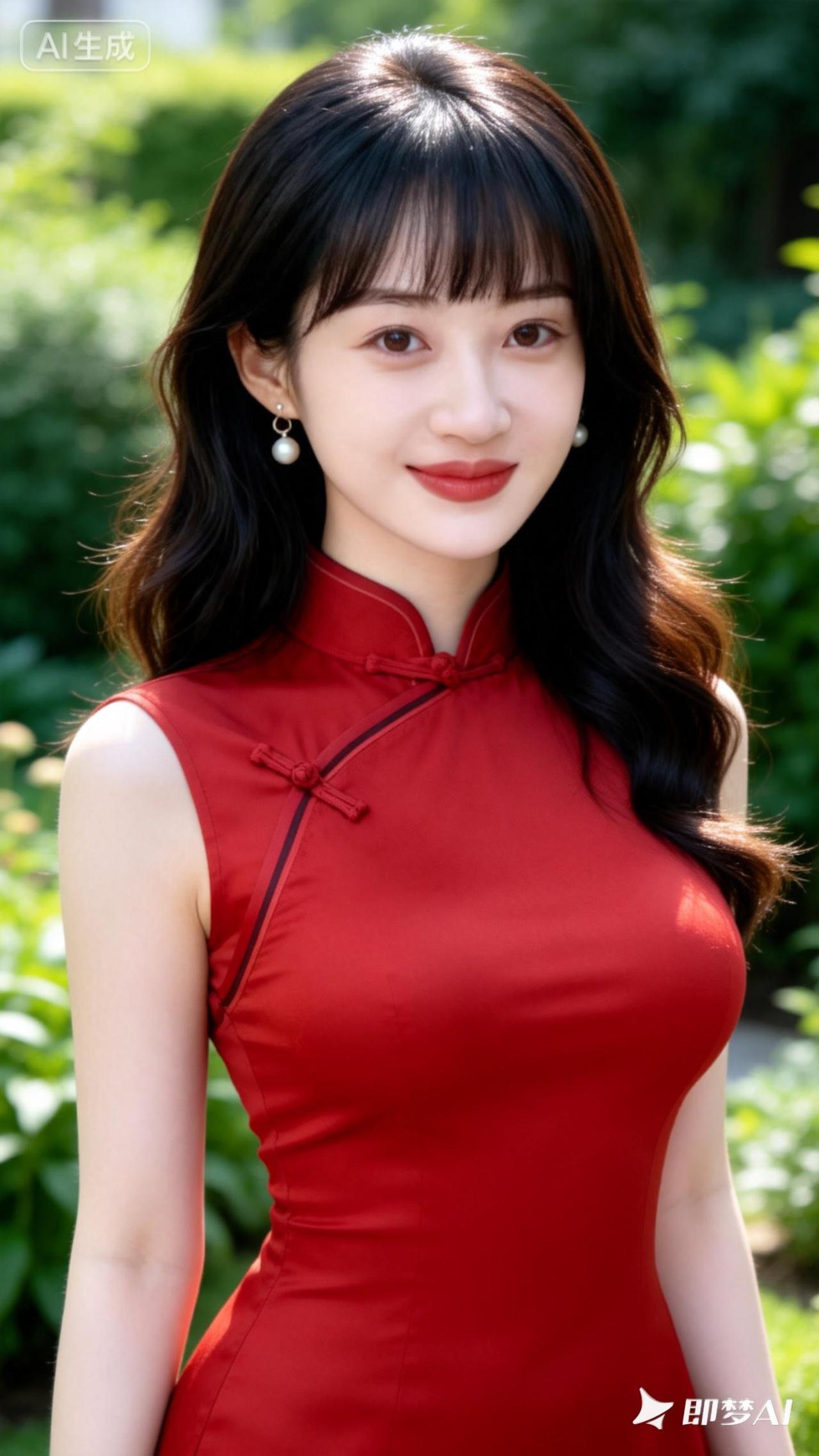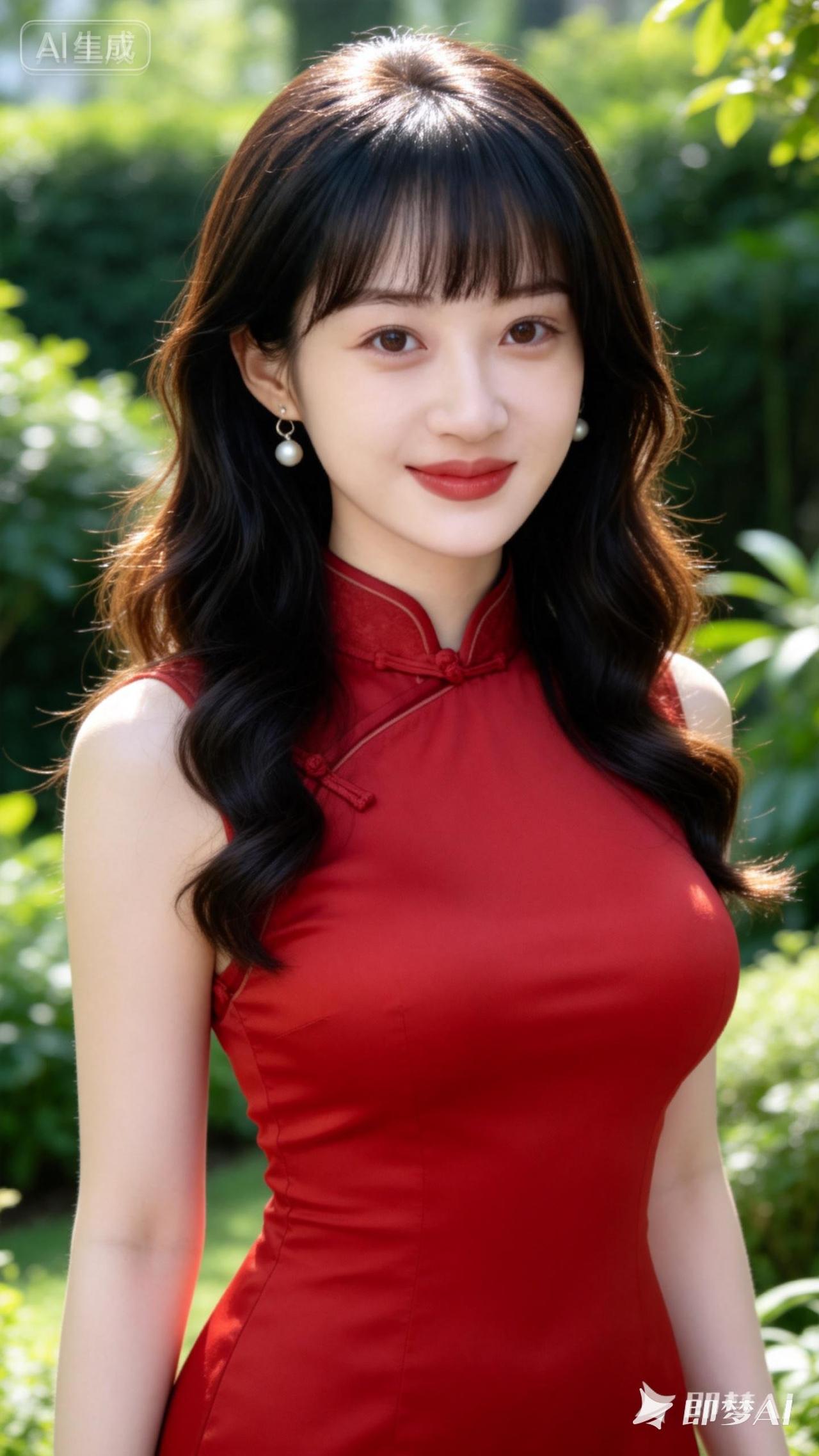 优雅红裙,自然光下绽放迷人魅力🌸✨