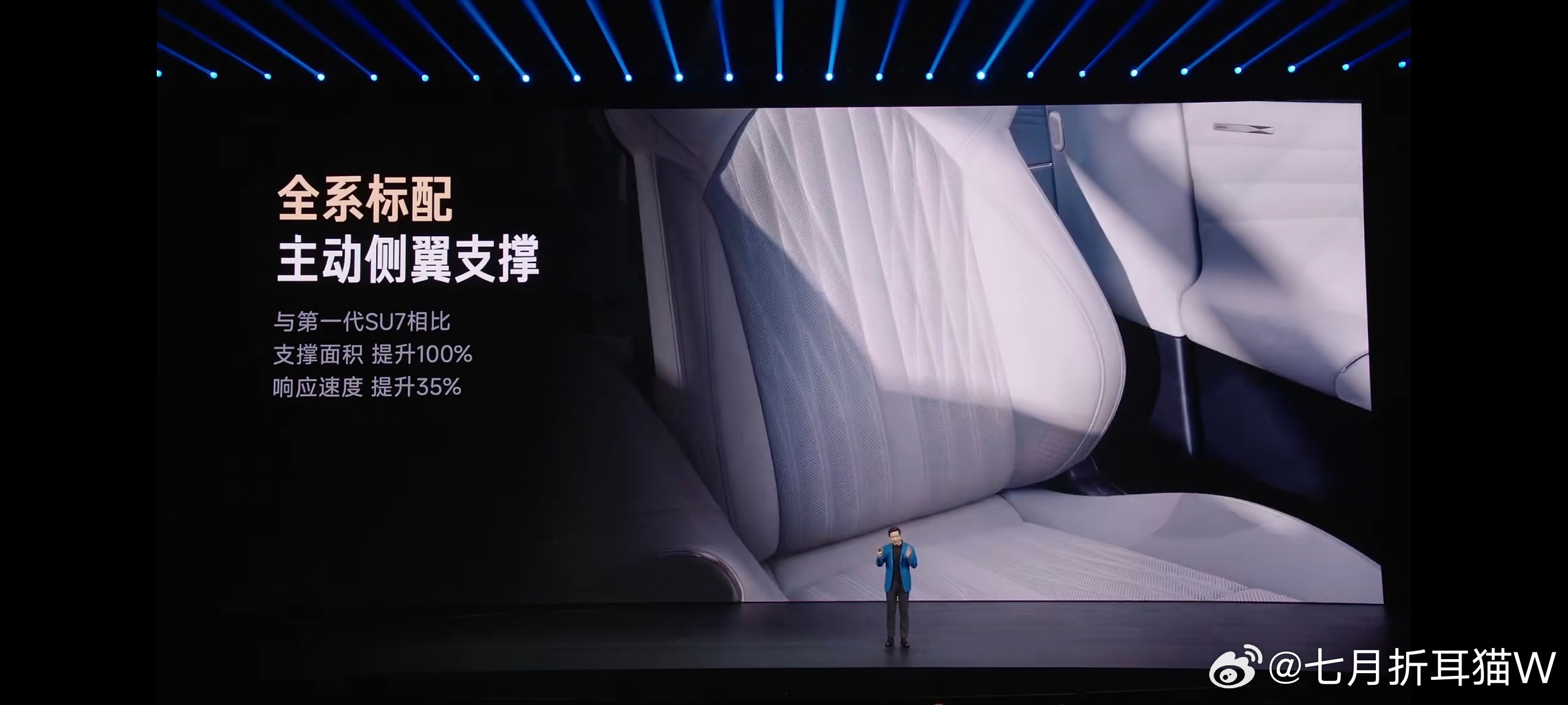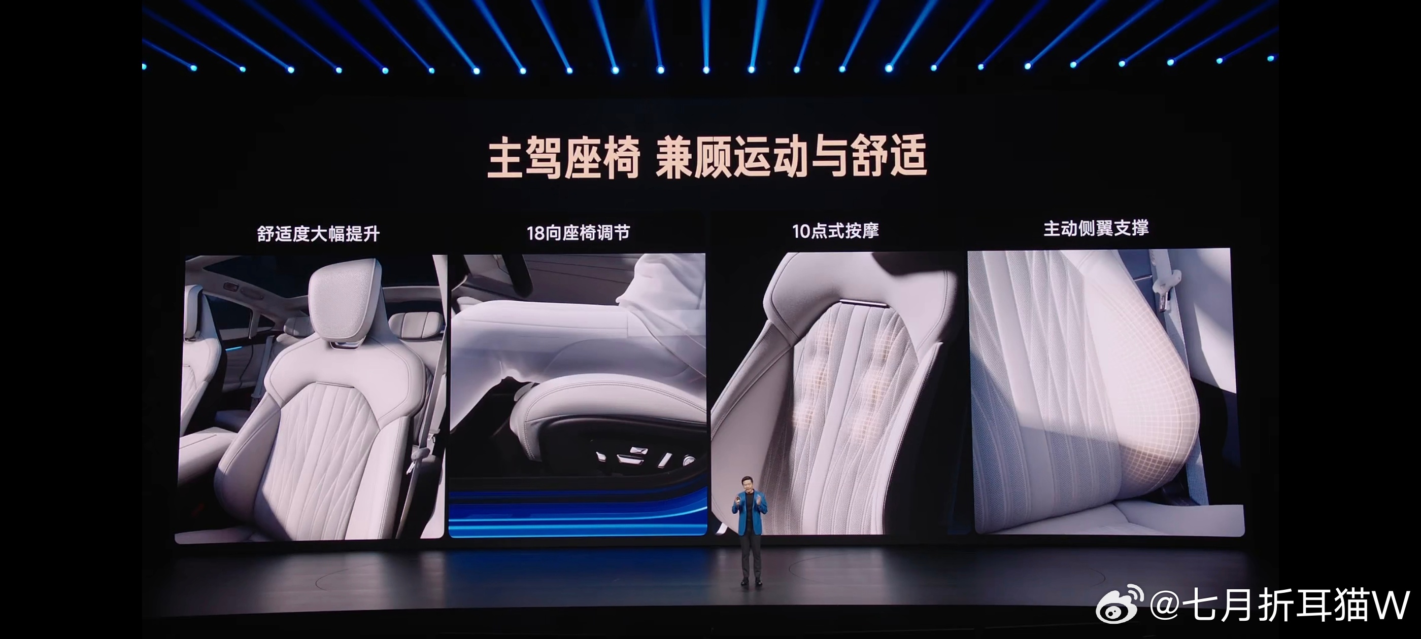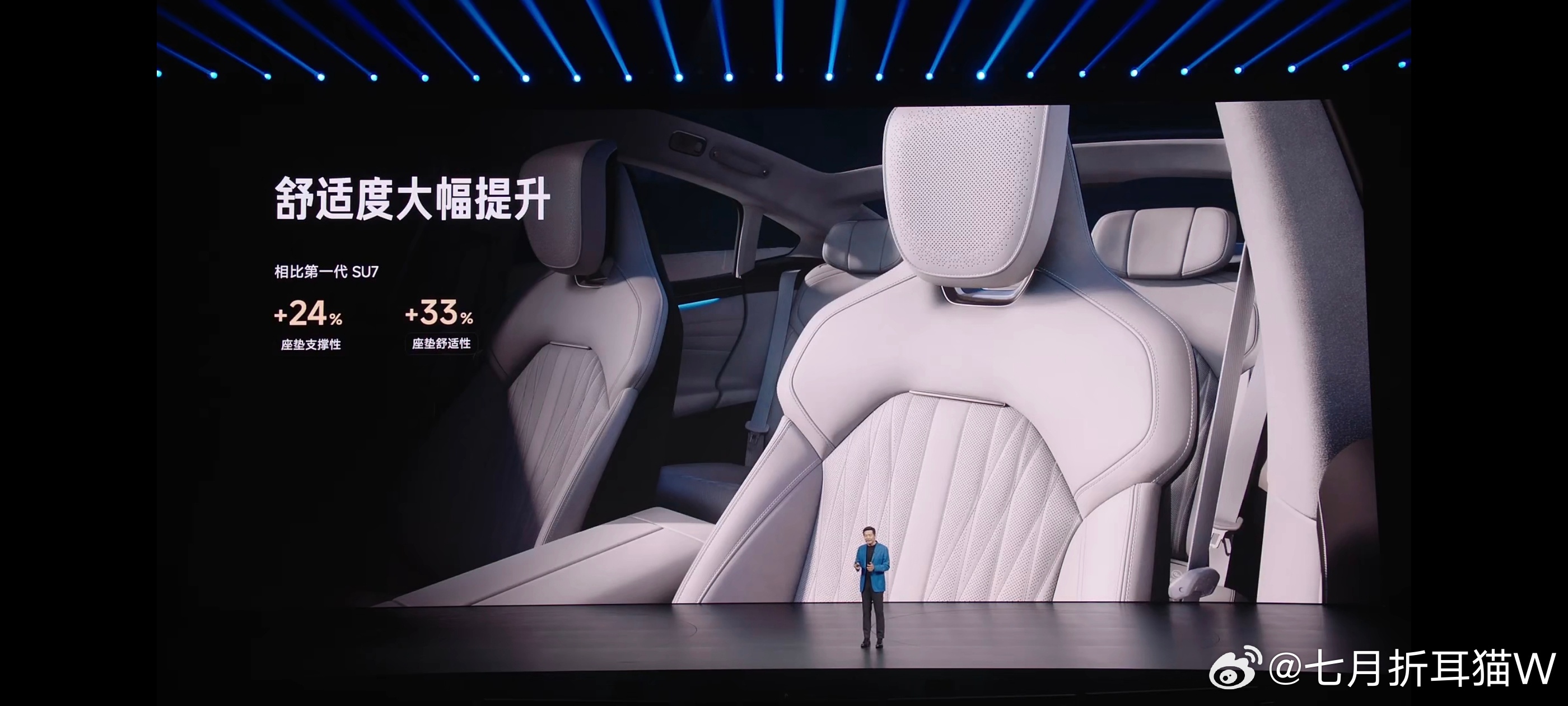 小米发布会小米新一代SU7,在性能体验提升的同时保证了舒适,从柔软质感到转弯护腰