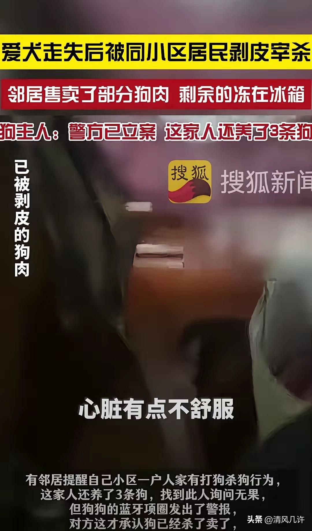江苏昆山,女子没关好门,家里的狗跑了出去,结果被邻居老人剥了皮把肉卖了。女子和丈夫找到他家,邻居还不承认,邻居女儿的男朋友甚至摔了三个啤酒瓶威胁。更可气的是邻居全程没有道歉,反而一副你能把我怎么样的态度。 发现狗不见的那一刻,女子的脑子一片空白。 她顾不上身体的不适,拉着丈夫在小区里疯跑,喊着狗的名字“雪球”,声音在楼道里回荡,却只得到空荡荡的回响。 她在业主群里发了一遍又一遍求助消息,字里行间都是颤抖的祈求:“如果哪位好心人抓到了它,请放了它,我愿意重金酬谢,它只是一条不懂事的小狗,从来没咬过人。”丈夫翻遍了小区的每一个角落,绿化带、车底、楼道拐角,直到凌晨两点,连狗的影子都没见着,两人坐在小区长椅上,一夜无眠。 第二天天刚亮,他们就冲进了派出所,调看监控的画面里,清晰地记录下那个让他们心碎的瞬间:傍晚六点五十分,雪球摇着尾巴在小区里闲逛,被同小区67岁的朱某拦住,朱某伸手抓住了它的项圈,把它拽进了自己家的方向。仅仅两个小时后,这条陪伴了女子四年多的小狗,就被剥了皮,成了案板上的肉。 有邻居悄悄拉住他们,压低声音说,朱某家最近总传来狗的惨叫,还见过他提着袋子出门,像是在卖什么东西。两人攥着拳头,敲响了朱某家的门。开门的是朱某,他一脸平静,甚至带着几分不耐烦,说自己从来没见过什么狗。 女子的手机突然发出尖锐的警报声——那是雪球身上蓝牙项圈的定位提醒,信号就来自眼前的这间屋子。朱某的脸色瞬间僵住,再也无法抵赖,才慢吞吞地说,狗已经杀了,肉卖了一部分,剩下的冻在冰箱里。 女子冲进厨房,拉开冰箱门的瞬间,一股冰冷的血腥味扑面而来。几块带着皮毛的狗肉冻在抽屉里,旁边扔着那个沾着血的蓝色项圈,那是她去年冬天给雪球买的,上面还刻着它的名字。 她腿一软,瘫坐在地上,眼泪砸在冰冷的地板上,连哭都发不出声音。朱某站在一旁,双手背在身后,眼神里没有丝毫愧疚,甚至还撇了撇嘴,觉得她小题大做。 就在这时,一个年轻男人冲了出来,是朱某女儿的男朋友。 他抓起桌上的三个啤酒瓶,狠狠砸在地上,玻璃碎片溅到女子的裤脚,他指着她的鼻子骂:“再闹就对你不客气,不就是一条狗吗,死了就死了,能怎么样?”酒瓶碎裂的声音刺耳,女子的丈夫立刻挡在她身前,和对方扭打起来,直到民警赶到,才把场面控制住。 警方当场立案,把朱某带回派出所调查。3月16日,双方坐在调解室里,朱某的家人始终没有一句道歉,他们觉得宠物狗不过是财物,赔点钱就了事,甚至反过来指责女子没看好狗,才导致了这场意外。 女子看着眼前这群冷漠的人,摇了摇头,拒绝了他们提出的任何经济赔偿。她要的不是钱,是让伤害雪球的人受到法律的惩罚,是为这条无辜的小狗讨一个公道。 雪球是她2020年从朋友家抱回来的,刚到家的时候才巴掌大,连路都走不稳,她每天半夜起来给它冲奶粉,看着它一点点长大,从一个小奶狗变成会摇尾巴迎接她回家、会在她难过时蹭她手心的伙伴。 这四年多里,雪球早就成了她家里的一份子,是她疲惫生活里的一点光。现在,这束光被人亲手掐灭了,连一句对不起都换不来。 她每天把自己关在房间里,看着雪球小时候的照片和视频,眼泪流干了又流,心像被刀割一样疼。 她不敢再走进小区,不敢路过朱某家的门口,每一次呼吸都带着刺骨的痛。她知道,雪球再也不会摇着尾巴跑向她了,再也不会在她怀里撒娇了,那个温暖的小生命,永远停在了3月11日的那个傍晚。 这件事在小区里传开后,有人同情她的遭遇,也有人说她太较真,不过是一条狗。可她知道,那不是一条狗,是她用四年多的时间一点点养大的家人,是她生命里不可替代的一部分。她等着警方的处理结果,哪怕过程再难,她也要为雪球讨回最后一点尊严。 各位读者你们怎么看?欢迎在评论区讨论。