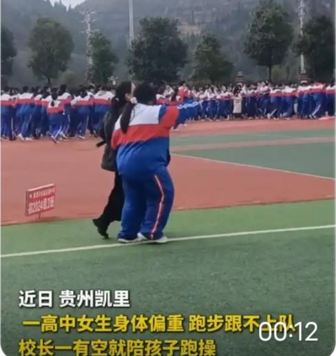 贵州凯里,一女高中生因身体偏胖,在跑步时跟不上其他同学,自己一人在操场上缓慢向前跑,校长看到后,为了不让孩子感到尴尬和孤独,为了给她树立信心,竟亲自陪着这名女高中生跑步! 这一幕,瞬间看哭全网!谁能想到,最顶级的教育,不是催着孩子跑赢所有人,而是有人愿意陪你慢慢跑。 贵州凯里的操场上,女孩因为偏胖、体力跟不上,孤零零落在队伍最后。她低着头、喘着气,每一步都藏着自卑与尴尬,生怕被同学指指点点,怕被贴上“掉队者”的标签。就在她最无助时,校长没有批评、没有催促,更没有让她“坚持跟上”,而是默默站到她身边,陪着她一步一步向前跑。 没有豪言壮语,只有并肩同行;没有居高临下,只有温柔守护。校长用行动告诉她:你不用和别人比速度,你只要勇敢向前,就有人为你撑腰。 这短短几分钟的陪跑,治愈的不只是当下的窘迫,更是孩子心底长期的自卑。很多人说,现在的教育太急、太卷,总在比成绩、比速度,却忘了孩子最需要的是被看见、被尊重、被温柔以待。 真正的教育,从不是制造焦虑,而是托举信心;不是淘汰弱者,而是照亮每一个不完美的小孩。这位校长陪跑的,不只是一段跑道,更是孩子的自尊与勇气。 网友纷纷破防:这样的校长,才是孩子一生的光!你小时候,有没有遇到过这样温暖的老师?评论区聊聊,让我们把这份温柔传递下去❤️教育本质的理解 逆风前行的孩子