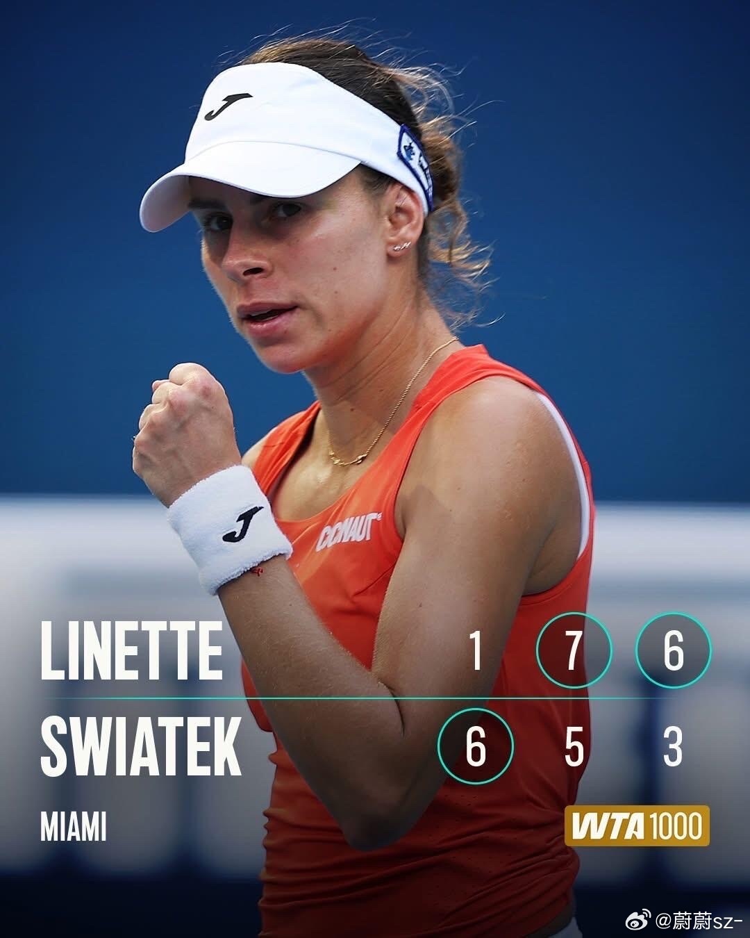 斯瓦泰克迈阿密首战出局WTA1000迈阿密站第二轮波兰德比爆冷,里内特1-6/7-5/6-3逆转2号种子斯瓦泰克,斩获生涯第3场TOP3胜利。