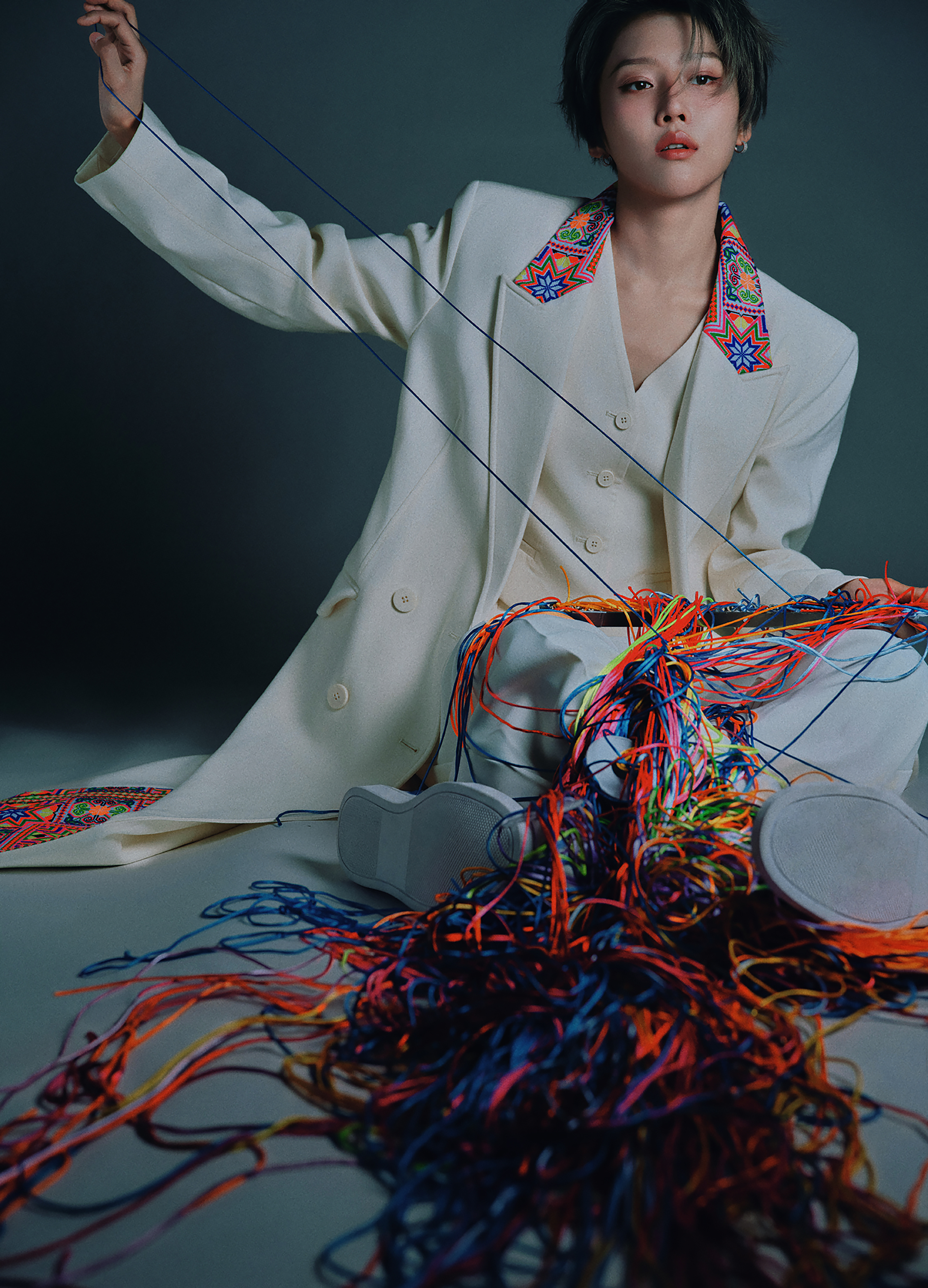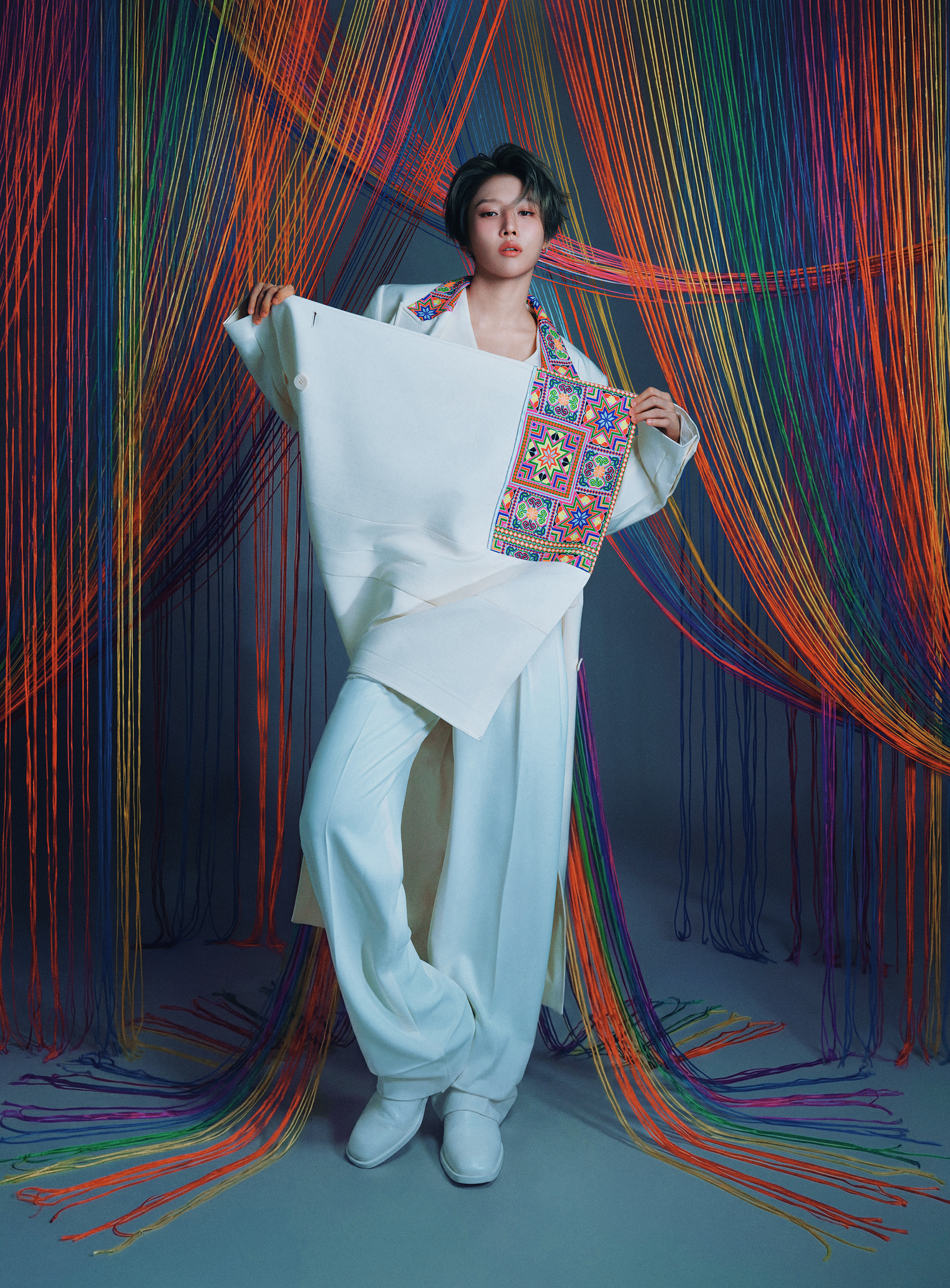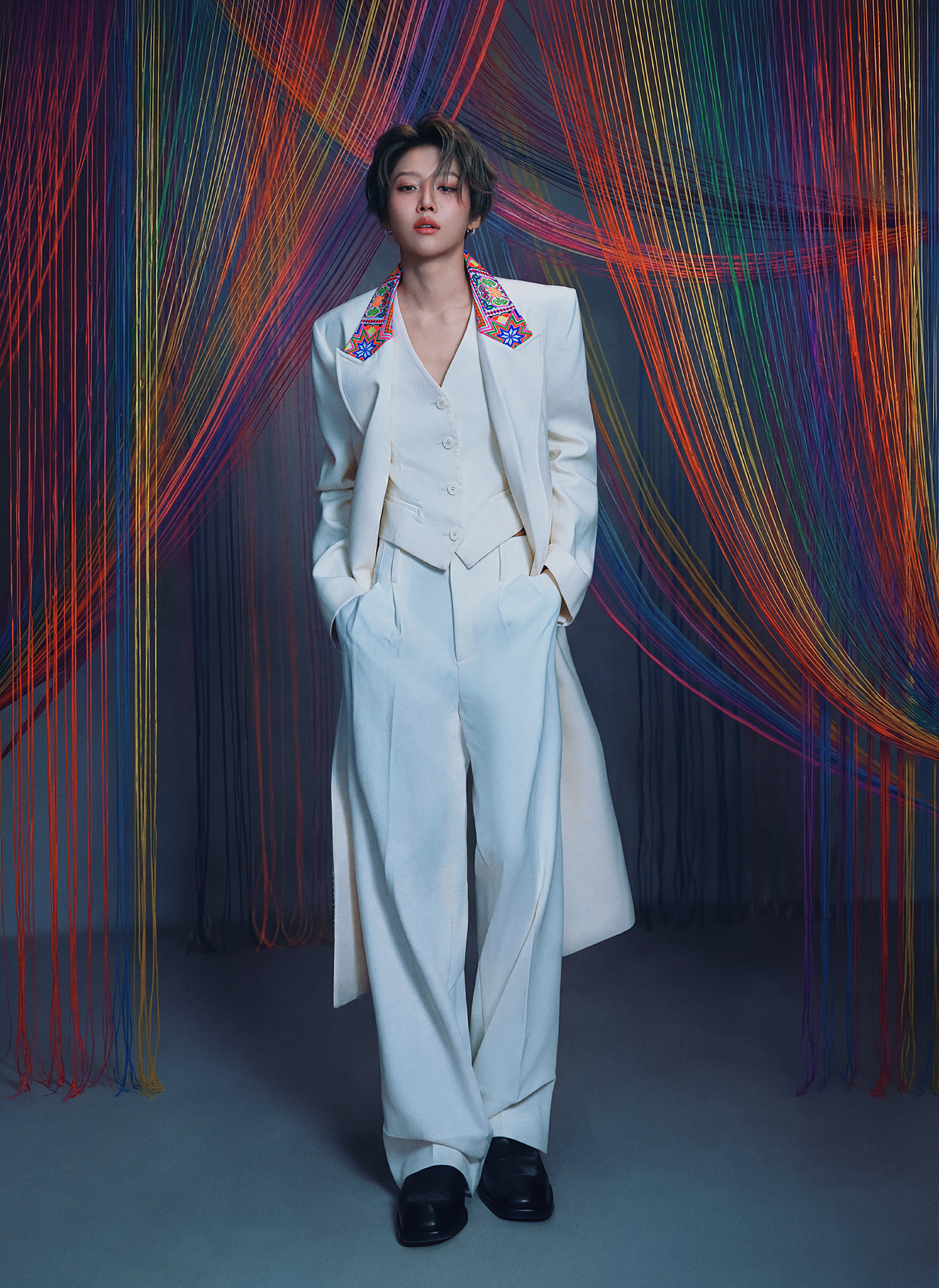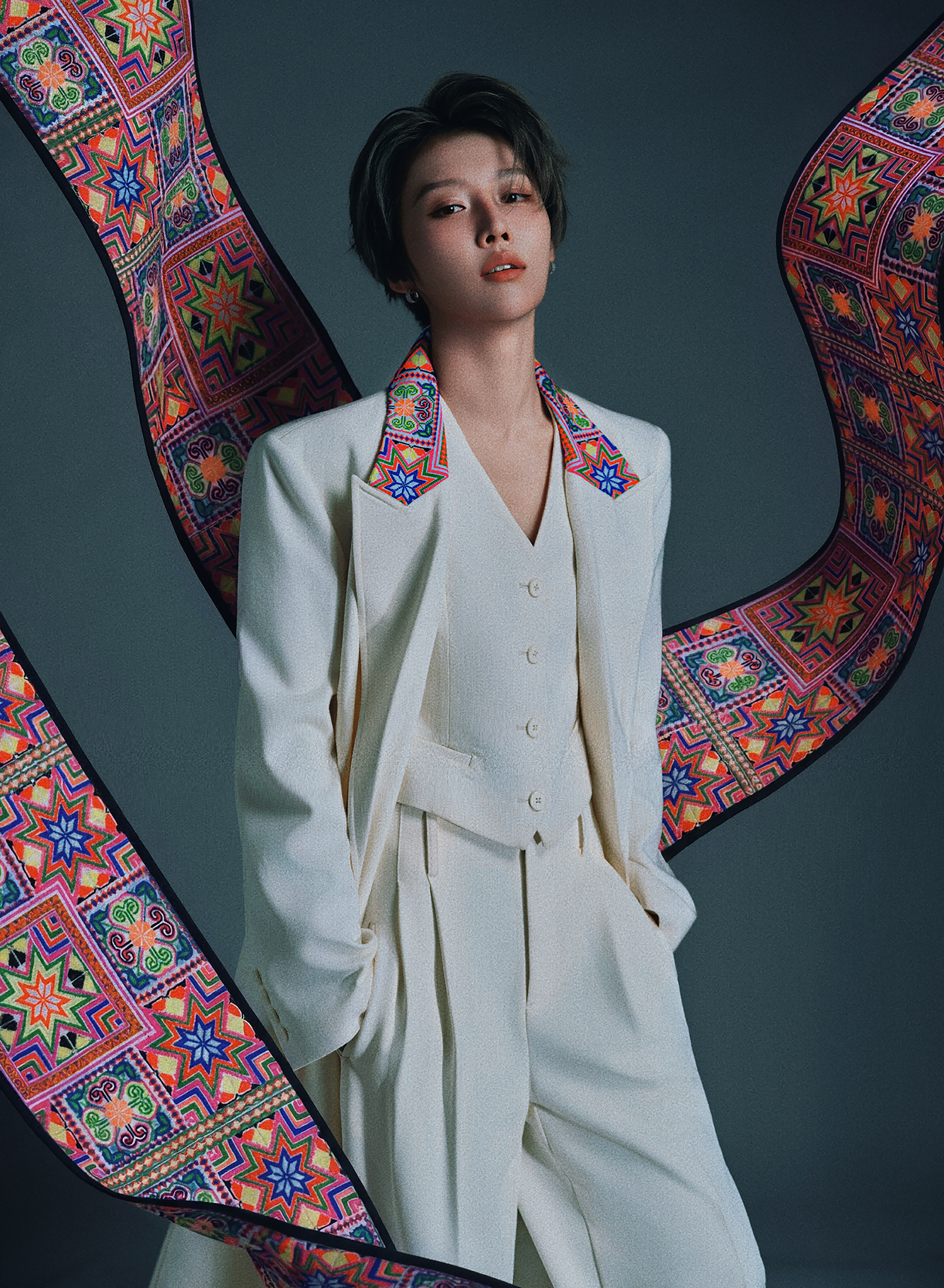 雨昕率先揭晓今日即将亮相上城士活动造型 ,契合非遗主题的选择 ,由贵州民族服饰设计师李昌德为她量身设计 ,将利落剪裁的米白西装与贵州苗绣非遗纹样融合 ,领口处的八角星花纹则藏着山野间的黔地灵韵 ,一针一线皆代表了民族匠心 ,有水准哦