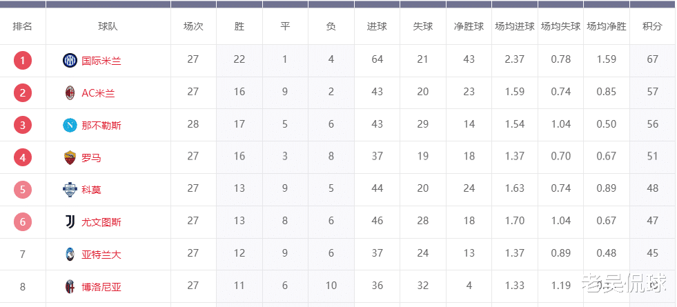 尤文图斯目前落后排在第四的罗马4分,落后科莫1分,领先亚特兰大2分,接下来的四场比赛对手都不算强——比萨、乌迪内斯、萨索洛和热那亚,这就要求老妇人拿出稳定的发挥,尽可能全部取胜,同时坐等竞争对手失分。