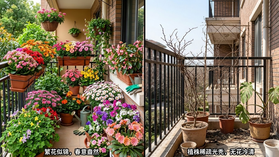 花友上周发来照片,阳台空空荡荡,院子光秃秃,配文就一句话:“蓝妖,别人家都开花了,我家咋还是冬天?”