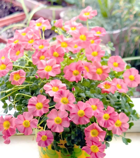 特点:花朵小巧精致,阳光充足时盛开。品种超多,花色各异,是阳台党的“宝藏植物”。