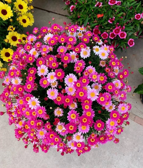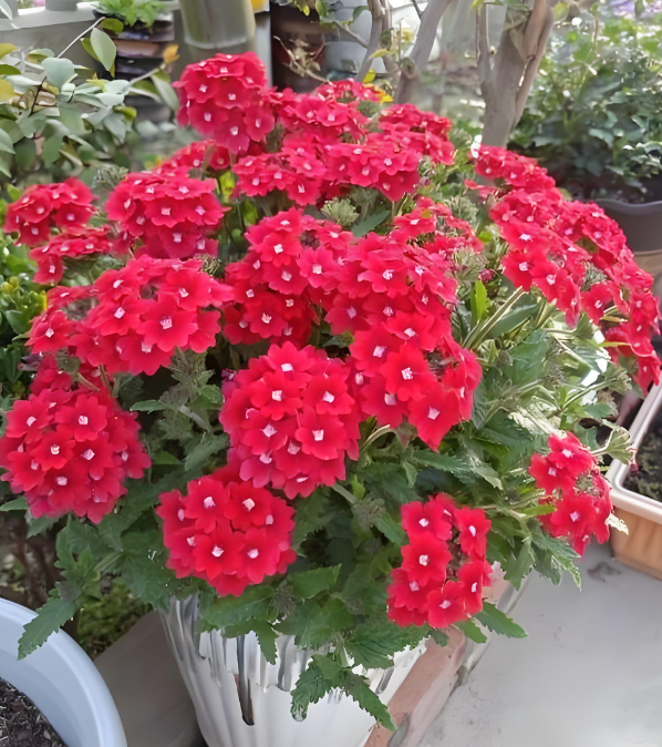 特点:花朵簇生成球,花色丰富,红粉紫白都有。垂吊或盆栽都好看,花期从早春4月一直开到霜降。