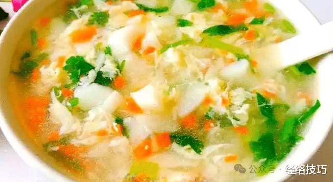 山药能够健脾养胃,茼蒿比较温和,汤色清淡还容易消化,能够帮助舒缓脾胃、舒缓腹胀,平常喝也能够滋养脾胃。