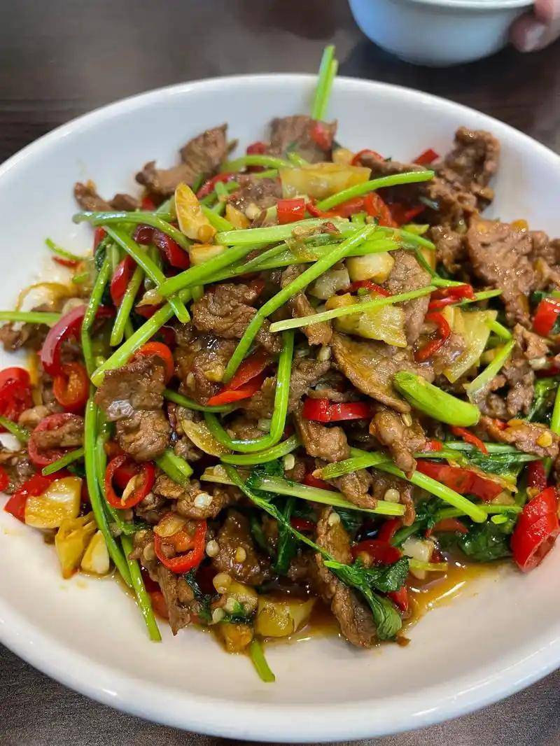 灶台正对着大厅,隔着一块玻璃。排队的客人就站在玻璃外面看,看他颠锅,看他撒盐,看他最后把一盘辣椒炒肉码得整整齐齐,青是青,白是白。