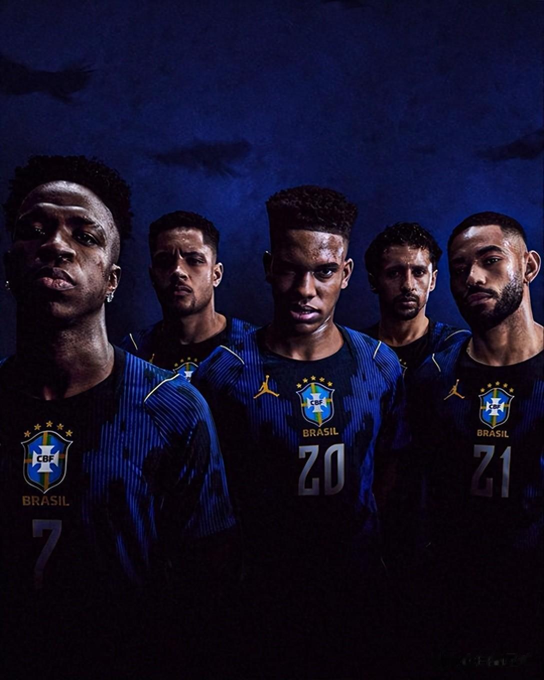 当足球王国巴西遇上篮球之神留下的飞人标志,这场跨越运动边界的碰撞,注定会让2026年美加墨世界杯的赛场多了一抹不寻常的色彩。图片中,维尼修斯、埃斯特旺等新一代领袖身着全新的黑色与深蓝渐变球衣,胸前醒目的Jordan Brand标志标志着巴西足协与耐克合作的新高度。这不仅是一件运动装备,更是一场关于体育美学与潮流文化的深度联姻。